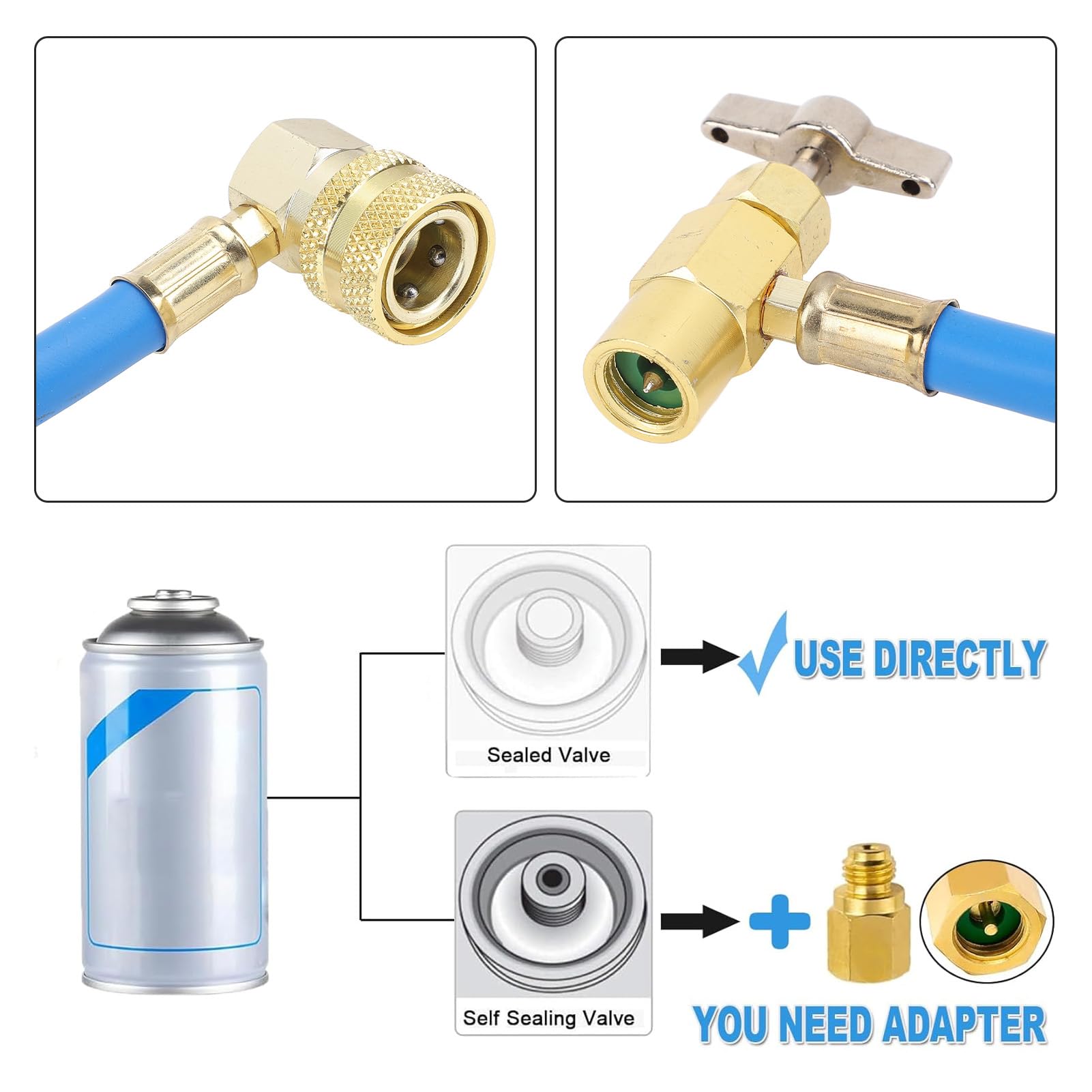 Recharge De Climatisation Kit De Recharge Pour Climatisation - Kit De Recharge AC - Ensemble Recharge Gaz Climatisation Maison Voiture : Rechargez Facilement Votre Climatisation Sans Fil Avec Ce Kit à Prix Réduit Kit de recharge climatisation - VEVOR - S'applique à R134a - R12... Une solution pratique pour une utilisation à domicile, dans un garage ou un atelier, ce set simplifie la manipulation du réfrigérant et les routines de maintenance saisonnière. Grâce à sa polyvalence, ce kit de recharge pour climatisation devient un allié précieux pour garantir le bon fonctionnement des installations tout au long de l'année. En raison de différentes mesures manuelles, veuillez permettre une différence de taille de 1 à 2 cm. Doté d'un tuyau avec manomètre et d'une valve de perçage, ce kit de recharge pour climatisation convient systèmes de climatisation automobiles et commerci. Remplissage stable : Procédé de remplissage sécurisé grâce au contrôle précis du réfrigérant, combiné à un manomètre visuel pour un suivi en temps réel et une interface anti-fuite minimisant les risques de fuite. Réalisé par la valve de perçage sans démontage du système. Sécurité accrue : Le kit de recharge climatisation intègre un mécanisme de double protection garantissant une utilisation sûre, empêchant les éclaboussures de réfrigérant et offrant une interface fiable pour un emploi sécurisé, ainsi une manipulation sans risque dans toutes les conditions d'utilisation courante. Pratique et Innovant : Modernisez la maintenance de la climatisation grâce au remplissage facile et à l'étanchéité sécurisée sans endommager le système. La...