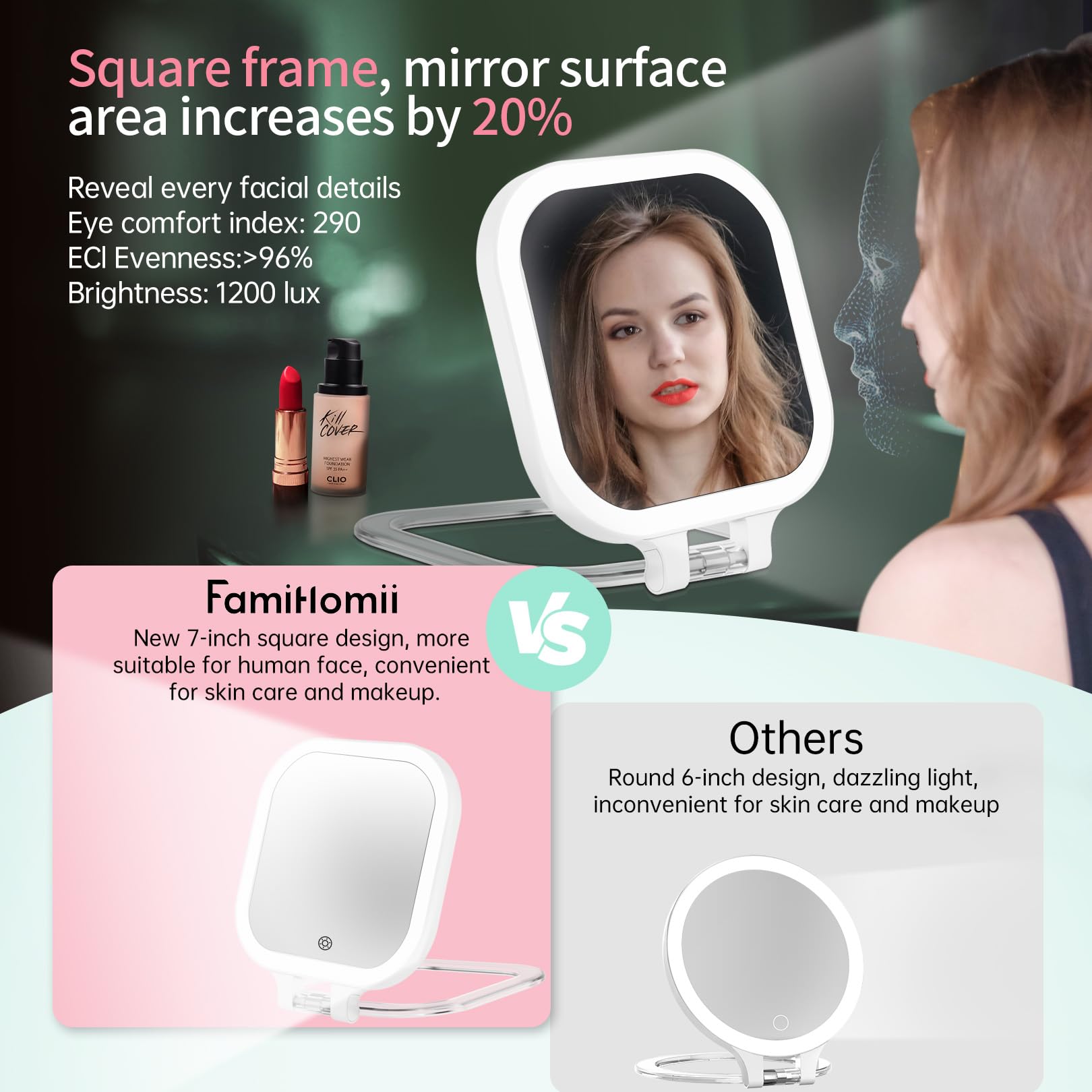 Si le miroir a le moindre problème, vous pouvez nous contacter. Miroir Grossissant Led Miroir Double Face Grossissant Miroir De Maquillage Lumineux Rechargeable Famihomii - Double Face 1x/10x - 3 Couleurs LED - Portable Voyage Miroir Double Face 1x 10x Miroir Bureau Coiffeuse Portable Miroir grossissant avec lumière 20X/1X, miroir de voyage double face avec lumière, miroir de maquillage rechargeable avec 3 réglages de couleur, support réglable, miroir lumineux de courtoisie portable miroir cosmétique de bureau Grossissement double face 1X/20X]Le miroir de voyage grossissant 20X est si puissant que vous ne trouverez plus de maquillage pour les yeux taché, d'imperfections invisibles, de poils errants ou de minuscules taches entre les dents 3 modes de couleur et luminosité réglable : le miroir de maquillage de voyage dispose de trois modes d'éclairage (naturel, chaud et blanc) et de niveaux de luminosité réglables avec un éclairage doux et sans danger pour les yeux, vous pouvez personnaliser l'éclairage pour s'adapter à n'importe quel environnement ou besoin de maquillage. Basculez sans effort entre les couleurs et les niveaux de luminosité pour garantir que votre maquillage soit impeccable dans n'importe quel environnement, des fêtes au bureau aux événements en plein air. Miroir grossissant lumineux 20X/1X pour le maquillage, miroir grossissant double face 1X/20X avec 3 couleurs d'éclairage, miroir de bureau rechargeable avec... Assurez-vous que chaque détail est parfait avec facilité. Miroir lumineux double face avec grossissement 20x/1x : découvrez une beauté impeccable avec notre miroir de maquillage LED double face. Miroir grossissant de voyage rechargeable : notre miroir de voyage dispose d'une batterie intégrée de 1500 mAh et d'un port de type C pour une recharge rapide, vous pouvez l'utiliser sans fil après une charge complète et plus besoin de remplacer la batterie. Famihomii Miroir de maquillage mural avec lumière, miroir Doté d'un éclairage LED et d'un côté grossissant 20x, il est parfait pour une application précise du maquillage, eye-liner, mascara, rouge à lèvres et toilettage. Relevez les défis de maquillage lors de vos déplacements avec notre miroir de maquillage.