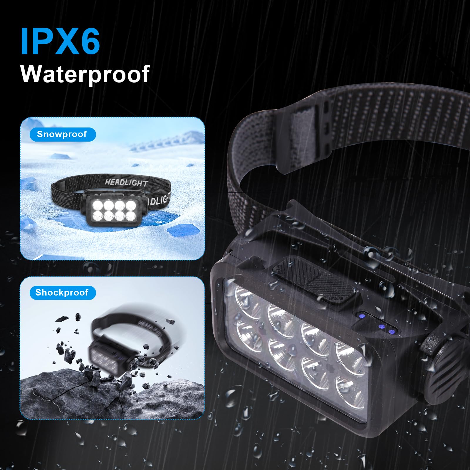 La tête de la lampe tourne à 120° pour un large rayonnement et reste bien en place lorsque vous courez pour éviter les mouvements indésirables ou les glissements Lampe Frontale 2500 Lumens Lampe Frontale LED Rechargeable Lampes Frontales Super Lumineuse Phare Intelligent IPX5 Étanche Frontale 8 Leds Batterie 2000mah Vous avez même une autonomie allant jusqu'à 8 heures (sur le réglage faible). Idéal comme cadeau et choix polyvalent : chaque ensemble contient 1 lampe frontale LED rechargeable pour diverses applications telles que la course de nuit, la pêche, les réparations d'équipement, le camping, les aventures en plein air ou les situations d'urgence. Blukar Lampe Frontale Rechargeable, Super Lumineux Étanche... En mode clé, il y a un faisceau fort, un faisceau moyen, un faible faisceau, un flash lent et un mode SOS Mode détecteur de mouvement : permet un contrôle facile de la lumière par mouvement de la main jusqu'à 12 cm de distance. Lampe frontale led rechargeable, 1000 lumens, lampe frontale étanche... Étanche et 5 modes d'éclairage : la lampe frontale est construite avec un design étanche IPX6 et résistant aux chocs pour des conditions difficiles, ce qui la rend fiable pour les activités de plein air telles que le camping, la pêche et les randonnées nocturnes, peu importe le temps. Dans chaque mode, appuyez sur le bouton du mode bouton pendant trois secondes. Idéal pour une utilisation sans utilisation lorsque vos mains sont pleines, sales, lorsque vous portez des gants ou en cas d'urgence Tbest Lampe frontale LED rechargeable Lumière rechargeable de bandeau d'induction de vague de Les lumières s'éteignent directement sans fermer tous les modes. Super lumineuse : la lampe frontale LED de camping est équipée de 8 ampoules LED puissantes et offre une luminosité maximale de 2500 lumens, idéale pour éclairer facilement tout votre camping, votre chemin ou votre espace de travail.