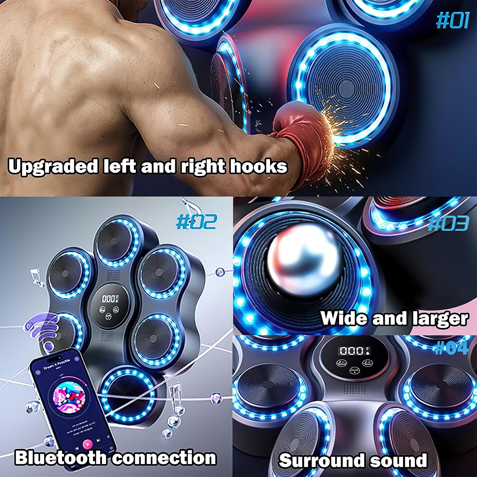 1 paire de gants de boxe., 1 fermeture Velcro. 1 ruban adhésif double face rond. Temps de charge : 3 heures. 【Machine de boxe musicale Bluetooth】- La machine de boxe musicale est équipée d'une connexion Bluetooth et d'un haut-parleur intégré,vous pouvez choisir vos chansons préférées via Bluetooth pendant l'entraînement de boxe,ce qui vous gardera immergé pendant l'entraînement,combinaison de musique préférée avec LED clignotante. 【Cadeaux fantastiques en boîte】- Voulez-vous chercher un cadeau unique ? Le choix de cadeau idéal pour vos proches,vos amis ou vos enfants,offrant des moments de plaisir et de remise en forme sans fin,profitez de plus d'excitation,de rires et de jeux actifs avec la machine de boxe musicale lors de l'entraînement quotidien. 【9 modes et variations de vitesse】- Cette machine de boxe musicale dispose de 9 modes et vitesses,vous pouvez trouver une méthode d'entraînement qui vous convient,Music Boxing propose 9 vitesses et modes de réglage,permettant à différentes personnes de s'adapter à différents niveaux de difficulté,vous pouvez régler le volume avec les boutons d'affichage,idéal pour la musique,le fitness,la boxe peut équilibrer le plaisir et le défi Installation facile et forte adhérence. Durée d'utilisation : 6 heures. 9 Modes Vitesses et d'entraînement : Notre machine de boxe électronique intelligente propose 9 modes d'entraînement et 9 vitesses réglables. Que vous soyez débutant ou boxeur expérimenté, vous pouvez rapidement trouver le rythme et l'intensité d'entraînement qui vous conviennent Il est livré avec des sangles Velcro et du ruban adhésif double face rond fourni. 1 câble USB de type C. Music Boxing Machine de boxe avec gants de boxe, cible murale LED, 9 modes de vitesse, appareil d'entraînement de musique pour adultes et enfants, prend en charge Bluetooth, noir Spécification : Appareil d'entraînement de boxe Bluetooth. Machine A Boxe Enfant EagerMinds Machine De Boxe Musicale,Équipement De Boxe Électronique Bluetooth Portable Mural, 9 Modes De Vitesse,Appareil D'entraînement Pour Enfant Et Adulte Pour La Maison Et La Gym (Blanc+Gants Boxe Nous proposons différentes méthodes d'installation avec des instructions détaillées (français non garanti). Vous pouvez choisir vos chansons préférées via Bluetooth pendant l'entraînement de boxe, entraîner vos sens et votre coordination. Les boîtes à musique offrent 9 vitesses et modes de réglage. au rythme et aux effets de lumière sympas,entraînez vos sens et votre coordination,rend l'entraînement de boxe plus amusant et excitant Largement utilisé Machine à musique adaptée aux débutants, aux adolescents et aux enfants, aux femmes, aux employés de bureau et aux étudiants, que ce soit pour les adultes ou les enfants, vous seul aimez les activités d'entraînement de boxe Contenu de la livraison : 1 boîte à musique Bluetooth. Nous recommandons cette music boxing machine pour les boxeurs adultes et enfants, qui veulent s’entraîner de manière ludique et fun, sans compromettre leur progression Cible De Frappe Murale Meitianfacai Machine De Boxe Musicale Intelligente Améliorée, Rechargeable Par Bluetooth, Avec Gants De Boxe, Entraîneur De Frappe Mural, Noir Jeu Sportif Enfants Adultes L'installation au mur est très simple. 【Facile à installer et forte adhérence】- Nous proposons diverses méthodes d'installation avec des instructions détaillées. Batterie intégrée : 2000 mAh.