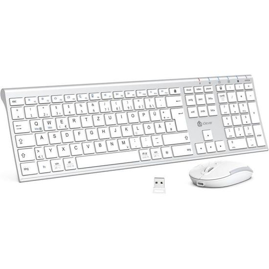 Longue durée de vie de la batterie : la puissante batterie de 280 mAh offre 90 heures de fonctionnement après une charge complète. Contact confortable sur le bout des doigts. Indicateurs utiles Envoyez plus d'informations instantanées Avec tous les voyants lumineux et interrupteurs, profitez d'une prise en main confortable. Placez-le dans votre poche pour pouvoir travailler n'importe quand et n'importe où. Vous apprécierez 99 touches entièrement fonctionnelles, y compris les touches numériques traditionnelles pour une saisie sans effort. Haute réactivité de la navigation Internet Profitez de la flexibilité de travailler sans fil avec une connexion stable. Il deviendra certainement l'outil de bord sophistiqué pour votre travail. Il dispose également d'une petite empreinte digitale, de boutons carrés lumineux et d'une batterie rechargeable. iClever Combo clavier et souris sans fil Améliorez votre qualité de travail à un niveau supérieur. Le nano-récepteur Sharable permet d'atteindre la fonction plug-and-play en même temps dans une zone de connexion de 33 pieds. La technologie avancée de 2,4 GHz du récepteur transmet les données rapidement et avec précision, tout en évitant les sauts de trames et de frame drops. Meilleures iclever clavier et souris sans fil - Novembre 2025 Clavier rechargeable pour une utilisation durable. Il est fin et assez compact pour jeter votre sac sans aucun fil. Encore mieux, notre design unique en ciseaux élimine les plis gênants pour les touches silencieuses. La conception de ciseaux intégrés et le clavier sans fil iClever empêchent les claquements désagréables pour les touches silencieuses. Les touches carrées lisses et bien placées rendent la saisie un jeu d'enfant Vous pouvez connecter instantanément le clavier et la souris à votre appareil sans avoir à acheter un couple. Le temps de charge total est de 2 heures - vous passerez moins de temps à attendre et plus de temps. Le clavier et la souris sans fil iClever garantissent une connexion sans fil stable. Combo Clavier Métal ABS Souris 2.4GHz Ensemble Clavier Et Souris Rechargeables Sans Fil, Clavier Et Souris De QWERTZ Allemand Ultra Fin HP 235 - Ensemble clavier et souris - sans fil - QWERTZ - Suisse - pour... Les touches carrées lisses et bien placées rendent la saisie un jeu d'enfant. Sa portabilité et sa polyvalence répondront à tous vos besoins d'écriture. Dites adieu au grand et encombrant. Une large zone de connexion de 33 pieds crée plus de possibilités pour votre vie. Points forts : Design luxueux et exquis. Connectez simplement le nano récepteur à votre ordinateur portable ou de bureau. Confort maximal avec des normes ergonomiques