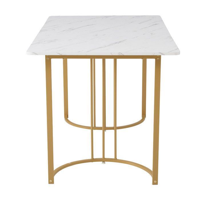 Table 6 Personnes 180x80x75 Cm Table à Manger Rectangulaire 4 à 6 Couverts - 140 X 80 X 75.5 Cm - MDF Table Salle à Manger 6 Personnes RHEA - Table à Manger Cuisine Séjour 160x80x75cm - Table à Diner Pour 6 Personnes Moderne Style Scandinave Sonama 91574657 Salut ! Cette table Tribesigns peut accueillir 6 à 8 personnes facilement avec ses 180 x 80 cm. En panneau MDF E1 et cadre métal, elle est robuste et a une... Que vous dégustiez un délicieux repas, jouiez à des jeux ou travailliez, vous pouvez être sûr que votre table à manger restera stable. Le montage se fait rapidement et sans difficulté grâce à une conception bien pensée. Inutile de passer des heures à visser ou de se perdre dans des instructions compliquées : la table est prête à l’emploi en peu de temps. Sa qualité supérieure et son aspect attrayant enrichissent chaque pièce et lui confèrent une touche d'élégance. Points forts du produit :- élégant et stylé, il attirera tous les regards dans votre intérieur- peut accueillir jusqu'à six personnes dans le plus grand confort- piètement métallique décoratif assurant une stabilité fiable- surface facile à nettoyer- assemblage sans effort- plateau rectangulaire- capacité de charge : 15 kgDimensions (l x l x h) :180 x 80 x 75 cmMatière :- plateau : panneau de particules- structure : métalCouleur :- plateau + tablette : effet marbre, blanc- piètement : doréContenu de la livraison :1 x table à mangerProduit de la marque :[en., casa] Design élégant et intemporel : apporte une touche raffinée à tout intérieur, idéal pour créer une ambiance conviviale dans la salle à manger. Entretien simplifié : la surface résistante se nettoie facilement avec un chiffon, idéale pour un usage pratique au quotidien. Table de salle à manger 6 personnes : la sélection produits Leroy Merlin de ce dimanche au meilleur prix ! Retrouvez ci-après nos 1288 offres, marques, références et promotions en stock prêtes à être livrées rapidement dans nos magasins les plus proches de chez vous