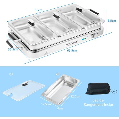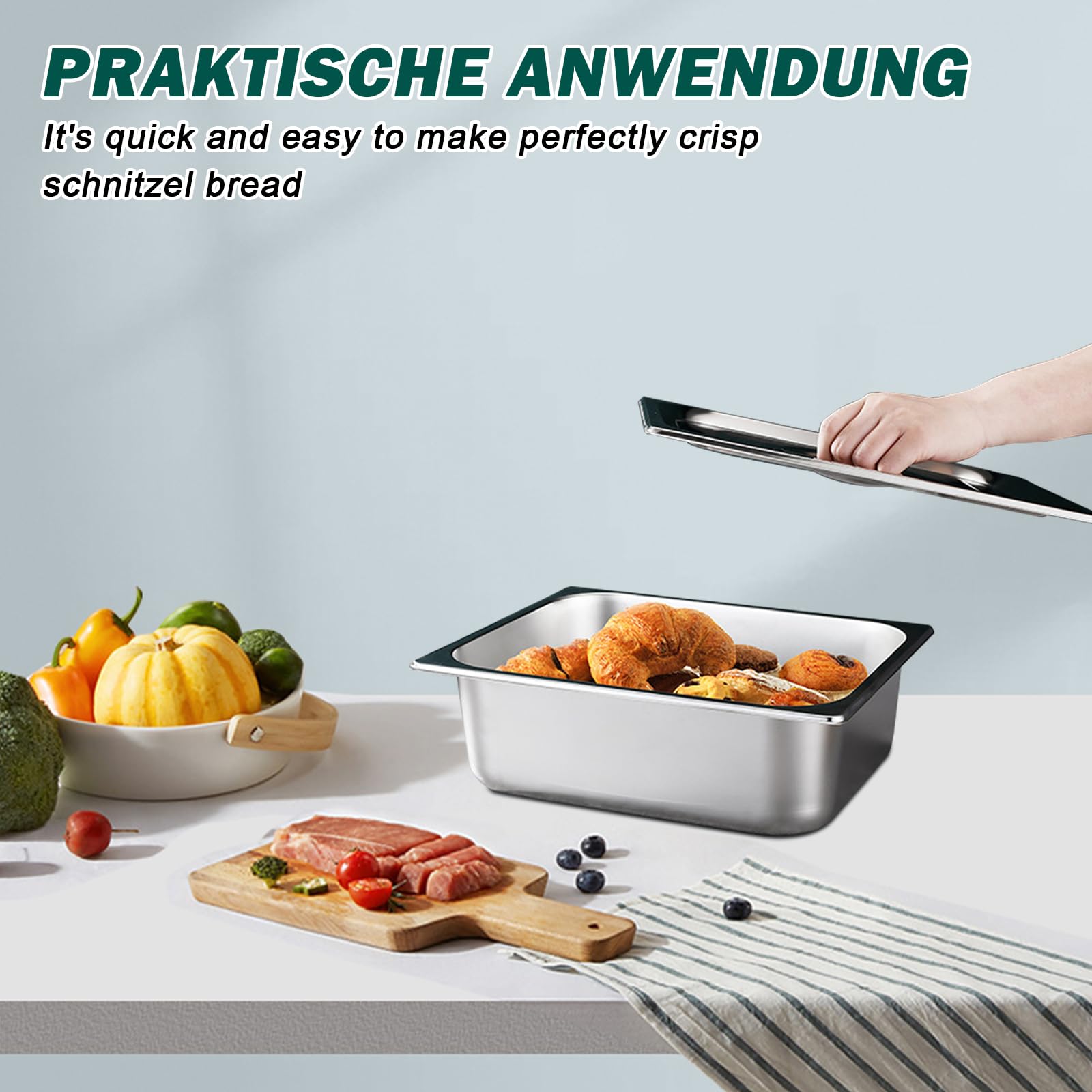 Cet ensemble permet de préparer vos aliments de manière organisée et efficace. Chaque récipient mesure 32,5 x 17,5 x 6,5 cm et est fourni avec son couvercle pour une hygiène parfaite. Fabriqués en inox de qualité alimentaire, ils sont... Ils offrent une prise en main confortable et réduisent le risque de blessure grâce aux bords tranchants, ce qui rend le travail dans la cuisine plus agréable et plus sûr. Le set de panure en acier inoxydable 3 pièces peut non seulement être utilisé pour la panure et la marinade de la viande et d'autres plats de barbecue, ils sont également parfaits pour conserver des aliments chauds et froids ou comme récipient de transport, d'ingrédients ou de service. Bac Gastro Inox Avec Couvercle TeamFar Lot De 3 Plats à Rôtir Rectangulaire En Acier Inoxydable De 35,6 Cm Avec Grille En V Et Grille De Refroidissement Sain Et Robuste Surface Brossee Et Passe Au Lave Vaisselle Récipient Gastronorme 32.5x17.5cm Design à bords roulés : les bords roulés de l'ensemble de panure offrent plus de stabilité et de sécurité. Le set de panure mesure 32,5 x 17,5 x 6,5 cm. Ils passent au lave-vaisselle et sont faciles à nettoyer, ce qui garantit une préparation et un stockage hygiéniques des aliments. Facile à ranger : grâce à leur design empilable, le service à paner en acier inoxydable de 3 pièces permet de gagner de la place. Les couvercles assortis permettent aux récipients de se fermer en toute sécurité, ce qui les rend également parfaits pour le stockage et le transport des aliments préparés. Après utilisation, ils peuvent être empilés pour économiser de l'espace et être rangés dans les armoires de cuisine. Contenu de l'emballage : 3 assiettes en acier inoxydable avec couvercles. La taille de chaque récipient est de 32,5 x 17,6 cm (hauteur : 6,5 cm) et est idéal pour un usage quotidien, en particulier pour les restaurants, les hôtels et les cuisines ménagères Le kit de panure est facile à nettoyer, passe au lave-vaisselle, de qualité alimentaire et sans odeur. Ils sont parfaits pour mariner, mariner et conserver les aliments, ce qui en fait un outil polyvalent pour toute cuisine. Ensemble de 3 plats à paner, en acier inoxydable, 15x22x3 cm