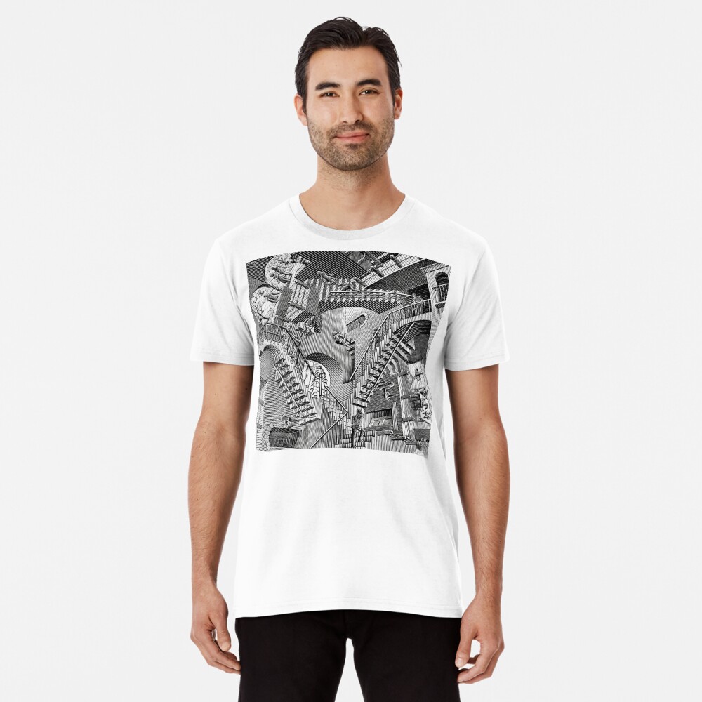 Features: Round neck, short sleeve, floral letter print, pullovers, vintage and fashionable Loose Fit, Athletic Fit, Machine wash 30C., Do not tumble dry, high quality T-shirt T-shirt Décontracté M.C. Escher Relativity Men's T-Shirt Unisex Black Cotton Hip T-shirt Homme MC Escher Premium Photo | Camiseta de tshirt men black MC Escher #SolarFast prnt on a black T-shrt | Black tshrt, Mc escher...
