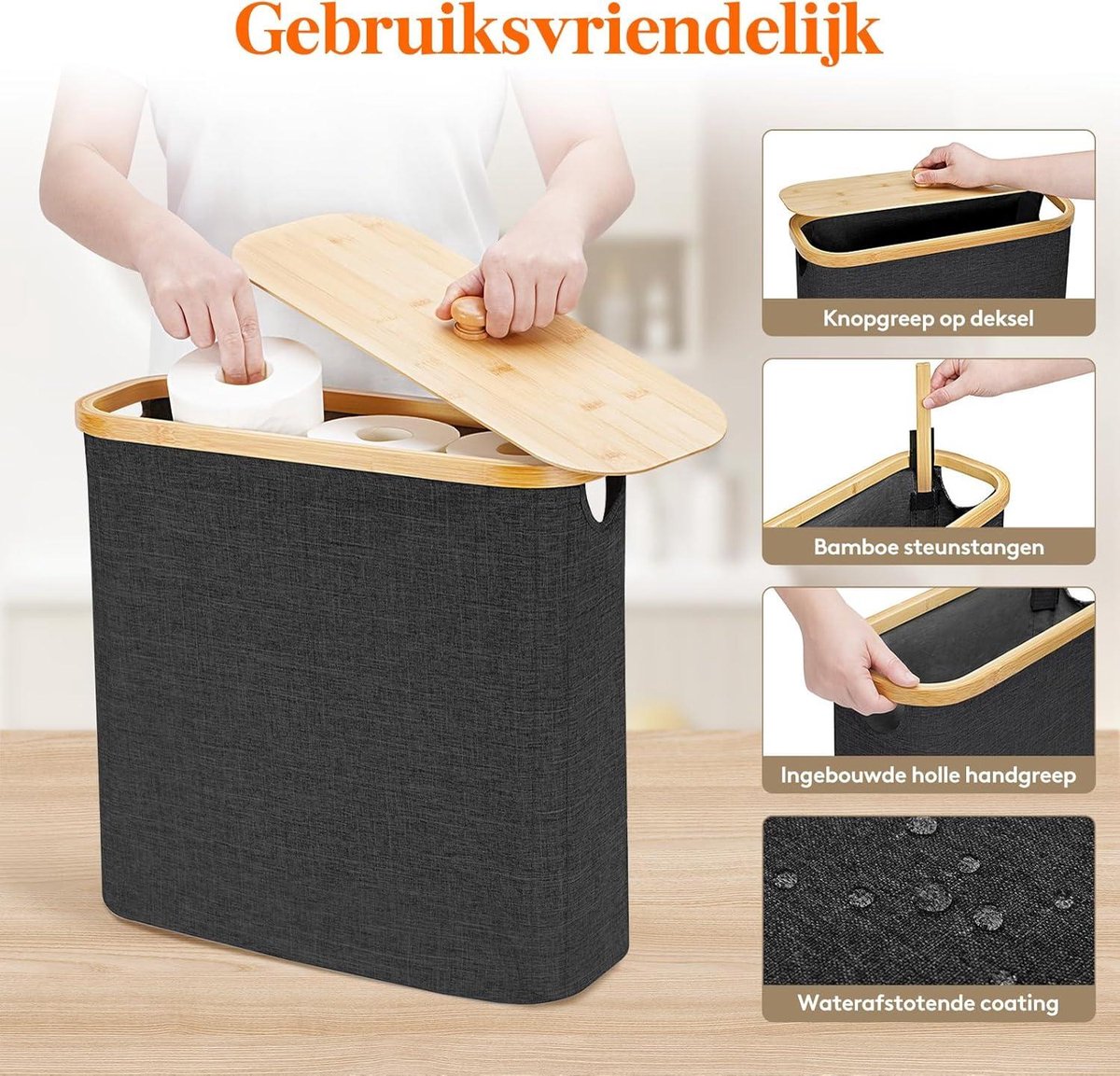 Poignée sur le couvercle Il est grand et mince et élégant. Lorsqu'il n'est pas utilisé, il peut être facilement plié pour un rangement compact. Ce porte-papier toilette en bambou comporte des poignées latérales pour un transport sûr et facile. Poignée et couvercle en bambou : le panier de rangement pour papier toilette est fabriqué en tissu Oxford. Il se range facilement et assure l'ordre et la propreté dans votre salle de bain ou vos toilettes. Poubelle Salle De Bain Bambou Relaxdays Panier De Rangement Salle De Bain - Panier En Bambou Organisateur D Armoire Boite De Rangement Tissu Boite De Rangement Marron Panier 12 Rouleaux Pliable Panier de rangement en bambou carré 31x31 cm - SILUMEN Panier de rangement pour papier toilette peu encombrant : les dimensions du panier à papier toilette sont de 43,5 x 35 x 14,5 cm. Cette conception facilite l'ouverture et la fermeture du couvercle. Il garde non seulement vos rouleaux de papier toilette propres et protégés de la poussière et de l'humidité, mais empêche également votre chat de toucher et de rayer les rouleaux de papier stockés, les gardant propres et intacts. Porte papier-toilette Bambusa WENKO, Avec support smartphone et tiroir... Il a une capacité de 30 litres et peut accueillir jusqu'à 12 rouleaux de papier toilette. Rangement polyvalent : ce rangement fin pour papier toilette est spécialement conçu pour les salles de bains étroites et permet une utilisation optimale de l'espace. Il est également équipé d'un couvercle qui facilite le déplacement et le retrait des rouleaux de papier Celui de 23 litres peut contenir jusqu'à 9 rouleaux de papier toilette, et celui de 30 litres peut contenir jusqu'à 12 rouleaux. En utilisant notre rangement... Lorsqu'il n'est pas utilisé, il peut être rangé dans des placards ou des tiroirs sans prendre de place. Le panier à papier toilette est non seulement adapté pour ranger du papier toilette, mais aussi des jouets, des serviettes, des vêtements sales et d'autres ustensiles de salle de bain. Durable, imperméable et anti-salissures.