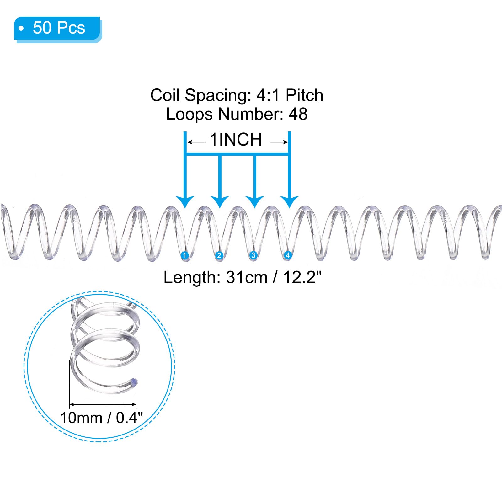 Spirales Reliure Plastique 10mm Bobines De Reliure En Spirale - HURRISE - 30 Trous - 11 Mm - Vert Transparent - Pack De 20 Bobines Reliure 75 Feuilles Pas 3:1 Reliure Spirale PATIKIL Lot De 50 Spirales De Reliure En Plastique Bobines de reliure en spirale - CIKONIELF - 20pcs - Plastique ABS... Remarque : Ces bobines de reliure à pas 3:1 ne conviennent pas aux machines. Spécification : Diamètre intérieur : 10mm/0,4 pouce; Longueur : 31cm/12,4 pouces; Écartement des bobines : 3:1; Nombre de pages de reliure : 75; Matériau : plastique Couleur : Transparent; Liste d'emballage : 100 pcs Bobines de reliure spirale en plastique Avantage : Les bobines de reliure spirale sont fabriquées en plastique durable et solide pour assurer une productivité à long terme pour tous vos projets de reliure, vous permettant de relier facilement des papiers et de les conserver longtemps. Les spirales de reliure offrent une capacité de rotation de page à 360 degrés pour une lecture plus facile. Instruction : Les bobines de reliure spirale ont un écartement de 3:1, ce qui les rend adaptées à toute machine de reliure qui perce 4 trous par pouce. Application : Ces bobines de reliure spirale en plastique sont adaptées à diverses occasions de bureau et offrent une grande commodité pour le stockage de fichiers, la reliure de fichiers, la collecte de papier, etc. Note : Ces bobines de reliure 3:1 ne sont pas adaptées aux machines. Bloc De Dessin 100 Feuilles A4 À Reliure Spirale 22,9 X 30,5 Cm...