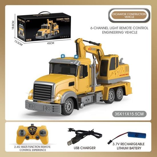 Remorques de camions semi-remorques RC - Véhicules durables et télécommandés Camion télécommandé pour garçon, véhicule de construction, jouet, lumière électrique, musique, inoler, EbAlloy E27, 5 canaux, 1:20 RC ; Produit chimique à haute... Semi Remorque Telecommande Camion RC Avec Remorque Pour Jouets. - Test Et Avis Engin De Chantier Telecommande Description du produit Semi-Camion RC avec Remorque, Simulation de Camion à Plat télécommandé 1/32, Jouet de Camion Remorque avec Son et Lumières pour Garçons et Enfants Spécifications : Type d'article : Semi-remorque RC avec remorque Matériau : Plastique Type de batterie : Carrosserie du véhicule, batterie Li-ion 14500 x 1, capacité de la batterie 500 MAH (batterie incluse) Télécommande : pile AA 1,5 V x 2 (piles non incluses) Taille du produit : Tête de voiture : env. Camion Transporteur Rc Simulation De Jouet De Camion Rc Véhicule De... JOUET ÉLECTRIQUE : Le semi-remorque et la remorque RC à l'échelle 1/32 sont conçus avec de l'énergie électrique, avec une forte puissance et un fonctionnement flexible. 20x6 cm / 7,87x2,36 pouces, transport : env. HAUTE SIMULATION : Le semi-remorque et la remorque RC sont conçus à l'échelle 1/32 et finement conçus, présentant parfaitement le véritable véhicule d'ingénierie du camion de transport. FONCTION MULTIFONCTIONNELLE: Le semi-remorque et la remorque RC adoptent une fonction de lumière, d'effet sonore et de transport pour simuler le fonctionnement de véritables véhicules d'ingénierie.