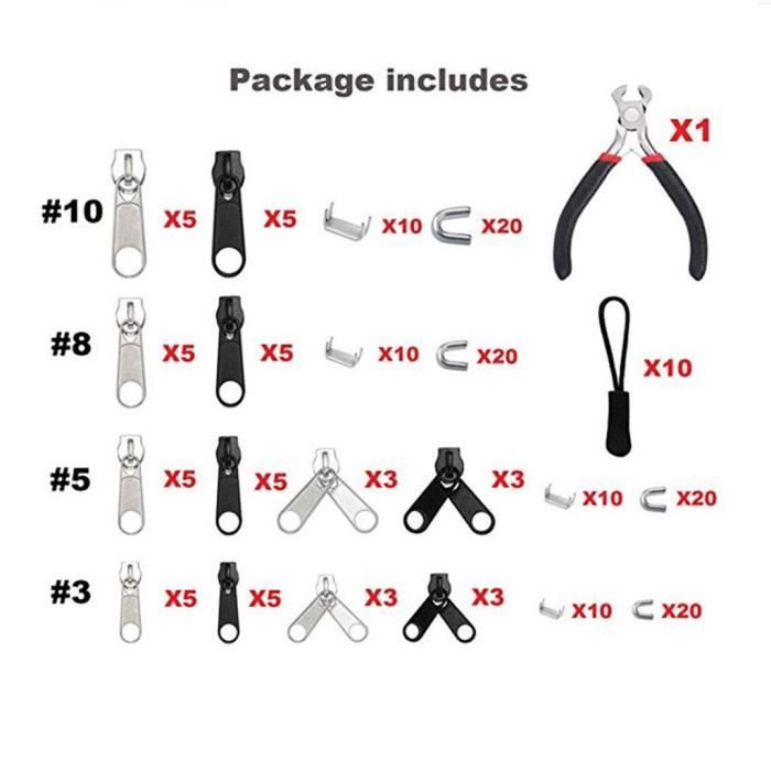 Avec des curseurs en métal disponibles en trois couleurs chic (bronze, platine, gris bronze) et en quatre tailles pratiques (#3, #5, #8, #10), vous pouvez facilement réparer une large gamme de produits, des vêtements délicats aux équipements de plein air robustes. Fermetures Éclair de Remplacement, Tirettes de Fermeture Éclair, 32 Parfait pour garder à la maison ou emporter en voyage, ce kit vous assure d'avoir toujours les outils nécessaires à portée de main. Curseur Fermeture éclair Kit De Réparation De Fermeture Éclair 194 Pcs/sac, Ensemble De Remplacement De Fermeture Éclair, Curseur De Vêtements, Fermetures Éclair Universelles, Outil De Couture Pour Tente Kit Couture Bricolage Que vous soyez un professionnel de la couture ou un passionné de bricolage, ce kit répondra à vos attentes. Le métal utilisé dans la fabrication de ces curseurs garantit une durabilité et une résistance aux rayures, prolongeant la vie de vos fermetures éclair comme jamais auparavant. Lot De 10 Fermetures Éclair De Rechange Réversibles En Forme De U Pour... Un indispensable pour les amateurs de DIY et pour les retouches domestiques. Investissez dans notre kit de réparation de fermetures éclair et soyez prêt à faire face à toute urgence de fermeture éclair, assurant ainsi que vos vêtements et accessoires sont toujours en parfait état. Leekayer 5# feretures éclair en nylon noir avec 25 curseurs noirs pour... Que vous ayez besoin de faire une retouche rapide avant un événement ou de préparer votre équipement pour une aventure, ce kit de réparation de fermeture éclair est l'outil pour toutes les occasions. Chaque pièce est facile à installer, permettant une réparation rapide et efficace, sans nécessiter de compétences particulières. Facilité de Stockage et d'Utilisation: Le kit est fourni dans une boîte compacte, facile à stocker et à organiser. Découvrez la solution ultime pour toutes vos nécessités de réparation de fermeture éclair avec notre kit de 48 pièces. Applications Larges: Idéal pour les réparations rapides ou les remplacements sur une variété de vêtements et d'accessoires, y compris les vestes, sacs à main, sacs à dos, et tentes.