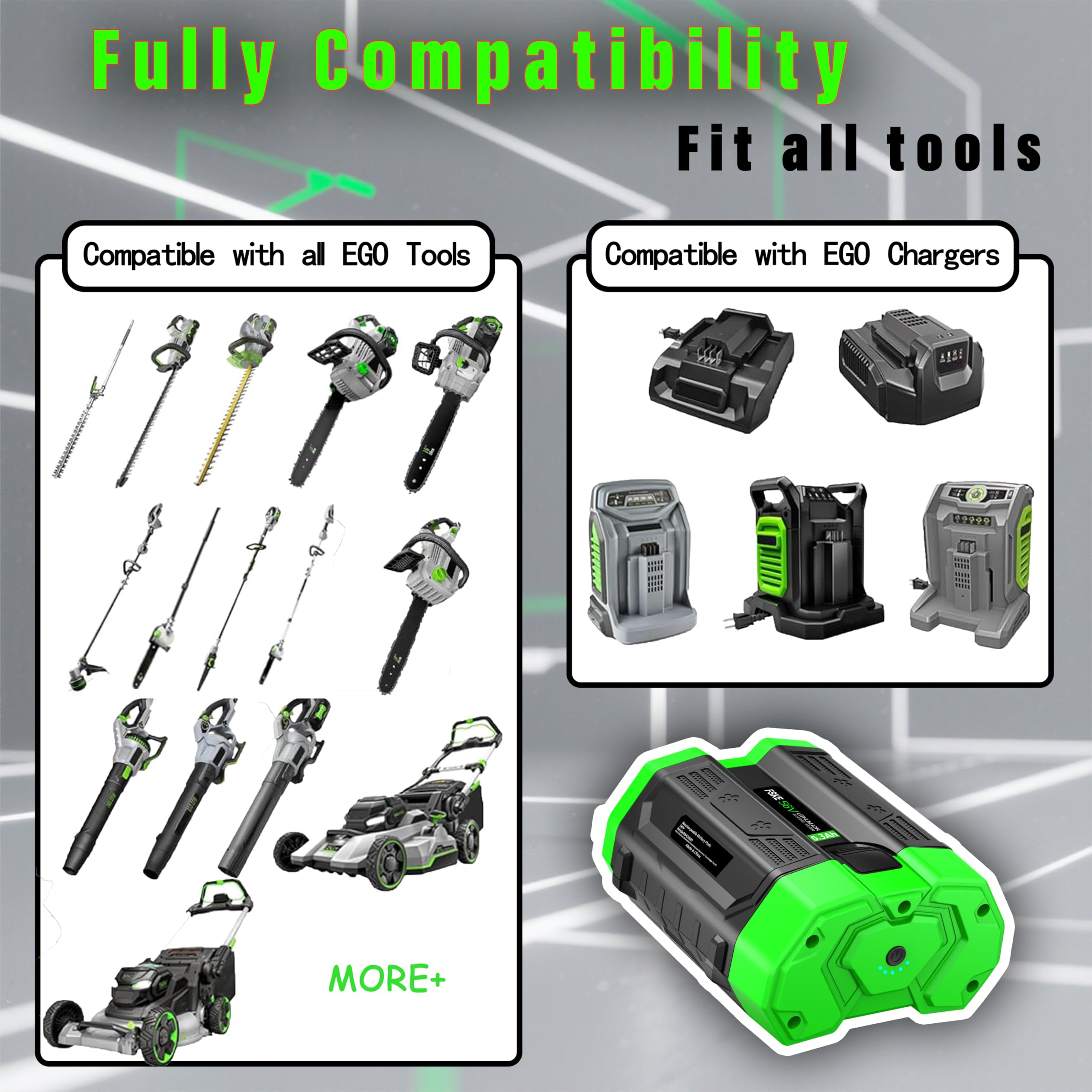 Batterie Li-Ion 5.3Ah Vhbw Batterie Remplacement Pour EGO BA1400T, BA2800, BA2800T, BA4200 Batterie 5.3ah Li-ion Akku 56V als Ersatz für EGO BA6720T, BT2240T, BA1400T, BA2800, BA2800T... Akku ersetzt BA1400T, BA2800, BA2800T für EGO Rasenmäher, Akku Nous garantissons de fournir des batteries de remplacement de sécurité et de pleine capacité. EXTENSILO Batterie remplacement pour EGO BT2240T pour tondeuse outil de... Nous vous offrons également une garantie de satisfaction à 100% sans risque pour vous permettre d'acheter en toute confiance ; Remboursement de 30 jours et garantie de 12 mois Stabilité : performances à long terme et performances stables - La batterie se conserve même sans utilisation, de sorte que vous êtes prêt à utiliser votre outil à tout moment lorsque vous en avez besoin pour éviter vos besoins. Les produits sont certifiés FCC, RoHS et CE, testés par le fabricant pour correspondre aux produits OEM, aussi bons que les originaux Batterie lithium-ion 56V 5., 3Ah avec mesure de carburant améliorée est utilisée pour remplacer la batterie ego 56V pour une puissance durable, stable et puissante