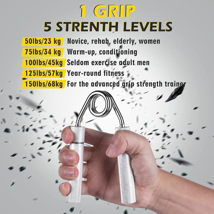 Guyode 2025 Le Plus Récent Doigt à Main Finger Gripper, Musculation Le hand trainer ou hand grip est une pince avec résistance à la pression qui permet de renforcer les muscles de la main, du poignet et de l'avant-bras et d'améliorer la force de préhension. Notre coach recommande d'échauffer les muscles au préalable et d'augmenter progressivement la résistance Appareil 5 Touches Ressorts 45kg Renforcement De La Préhension Des Doigts, Hand Grip Musculation Entraineur De Doigts Entrainement De Musculation Avant Bras Hand Grip Strengthener Pour Le Renforcement Musculaire 89489914 Entraîneur Main Préhension 5 Touches 45 Kg Avant-bras Exercice précis, renforcement de la force de préhension : les cinq touches sont conçues indépendamment, en fonction de l’espacement ergonomique, et les doigts et les paumes sont ciblés avec précision. Les touches recouvertes de TPE sont douces au toucher et douces pour la peau, ce qui réduit la pression des doigts et offre une expérience d’entraînement confortable pendant l’exercice. Hililand Renforcement des doigts Hand Grip Strengthener Finger... Améliore efficacement la flexibilité d’un doigt, l’endurance et la force de préhension globale, et améliore les performances de la main dans tous les aspects. Léger et portable, commencez à pratiquer à tout moment : le petit corps n’occupe pas de zone et il n’y a pas de fardeau sur le portable et le transport. Qu’il s’agisse de sports de haute intensité tels que l’haltérophilie et l’escalade, de jouer d’un instrument de musique, de travailler au bureau ou même de prendre soin des mains des personnes âgées, il peut améliorer la fonction de la main. Que vous soyez un passionné de fitness, un athlète ou un passionné d’exercice, vous pouvez commencer votre voyage de force de la main à tout moment, n’importe où.