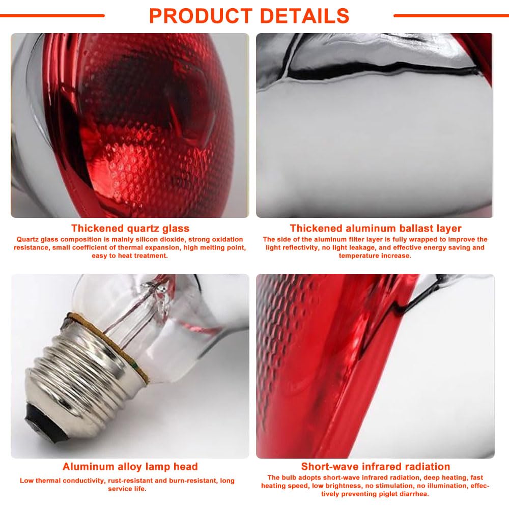 Tout en favorisant également la croissance vigoureuse des plantes de serre, il stimule le potentiel des plantes et joue un excellent rôle dans l'isolation alimentaire dans l'industrie alimentaire. Lampe Chauffante Chiot Lot De 2Ampoules Chauffantes Pour Reptiles De 100W, Ampoules De Soleil éclairage Chaleur Animal 🦎Fonction spéciale :🦎 1., Ce Lampe Chauffante Reptile est fabriqué en verre de haute qualité, qui offre un bon effet chauffant et une résistance aux températures élevées., 2., La Ampoules Chauffantes pour Reptiles fournit une lumière rouge faible et thermique appropriée et ne perturbera pas le cycle d'activité normal. AA E27 Ampoule chauffante ceramique reptiles émetteur infrarouge 100W Meg71995 - Maison 【Chauffage efficace】 Cette Lampe Chauffante Reptile offre de fortes performances de chauffage et la fonction de chauffage rapide garantit que vous obtenez suffisamment de chaleur dans les environnements froids. 【Éclairage chaud】 La lumière rouge douce peut empêcher la vue des animaux d'être stimulée, ce qui peut aider les animaux à se détendre et à mieux se reposer et à améliorer leur sentiment de sécurité. JAR Lampe Chauffante , Ampoule Chauffante 50W à 100W , Ampe Chauffante E27 Adaptée aux Reptiles... Lampe à lumière rouge pour reptile, utilise un culot standard E27, 230 volts, facile à installer. Convient pour le jour et la nuit., 3., Le Lampe Chauffante Reptile régule les fonctions physiologiques de votre animal, augmente l'activité générale et favorise l'appétit, la digestion et le métabolisme., 4., Cette ampoule rouge reptile est utilisée avec une douille E27 d'une tension de 230, facile à installer. Surtout la nuit, la Lampe Chauffante Reptile aide à maintenir le rythme biologique de votre animal afin qu'il s'endorme plus facilement et maintienne un état de repos profond tout au long de la nuit. Wind-EJlife ampoules pour lampes chauffantes pour reptiles Lampe 🦎Spécification :🦎 Matériel : Verre + Métal Couleur : Rouge Ampoule : E27 Puissance : 250 W Tension : 230 V Taille : 14 x 12 cm 🦎Le forfait comprend :🦎 1 * Lampe Chauffante Reptile 🦎Remarque :🦎 1., La température de surface de l'ampoule est trop élevée, veuillez ne pas la toucher directement pendant le travail. 【Large application】 Cette Lampe Chauffante Reptile convient non seulement à une variété de volailles, chats, chiens et autres petits mammifères, mais peut également fournir de la chaleur aux tortues, dragons barbus, lézards, serpents et autres reptiles.
