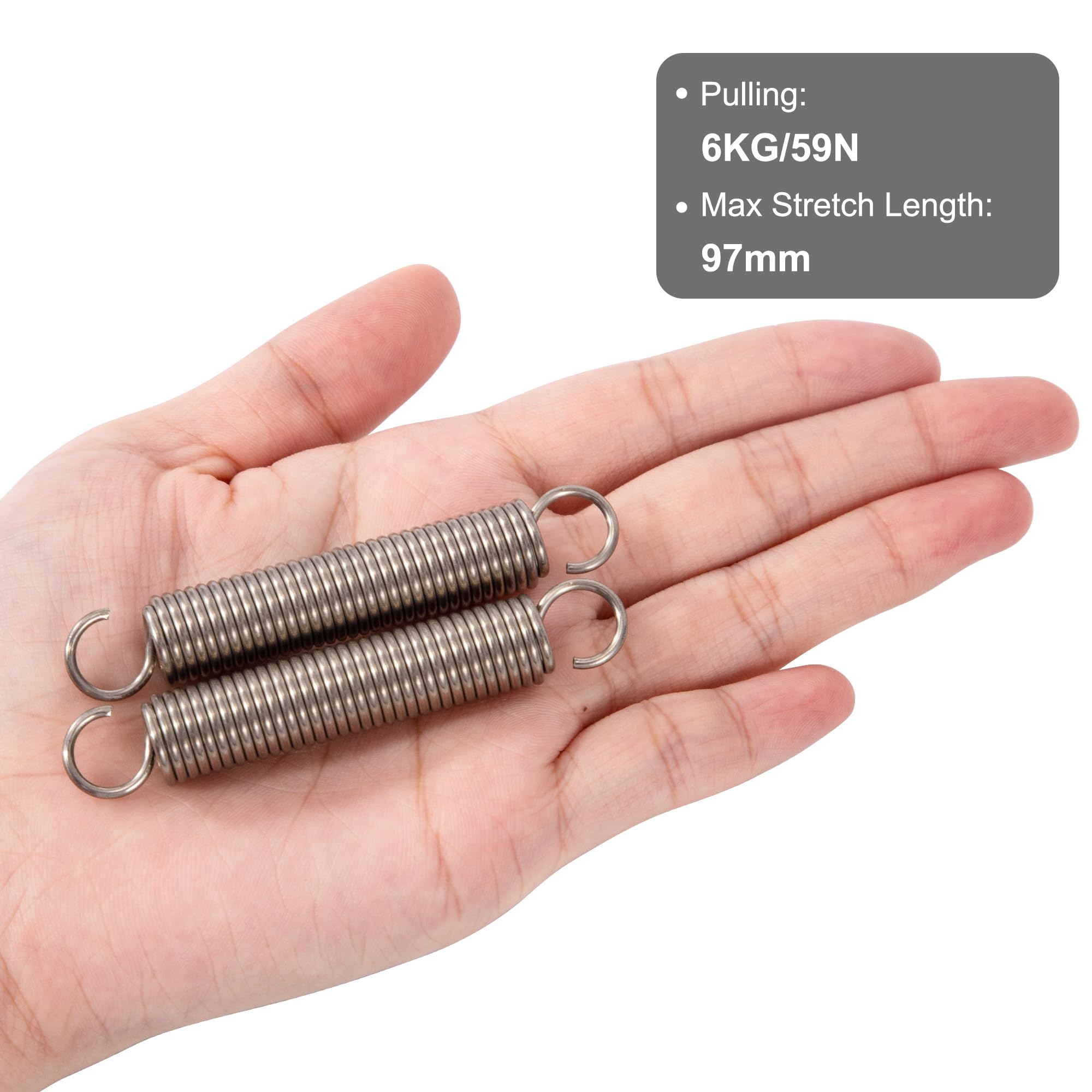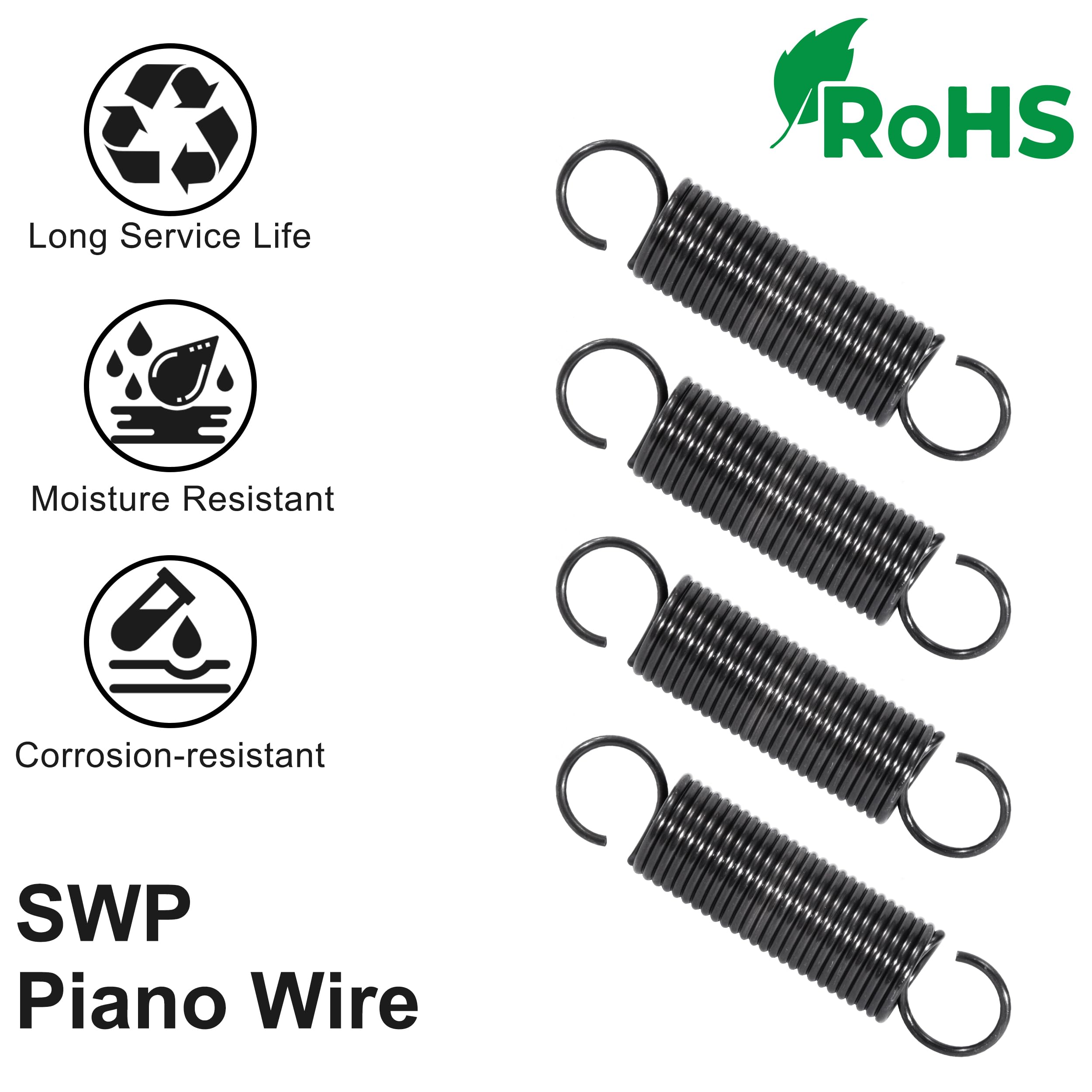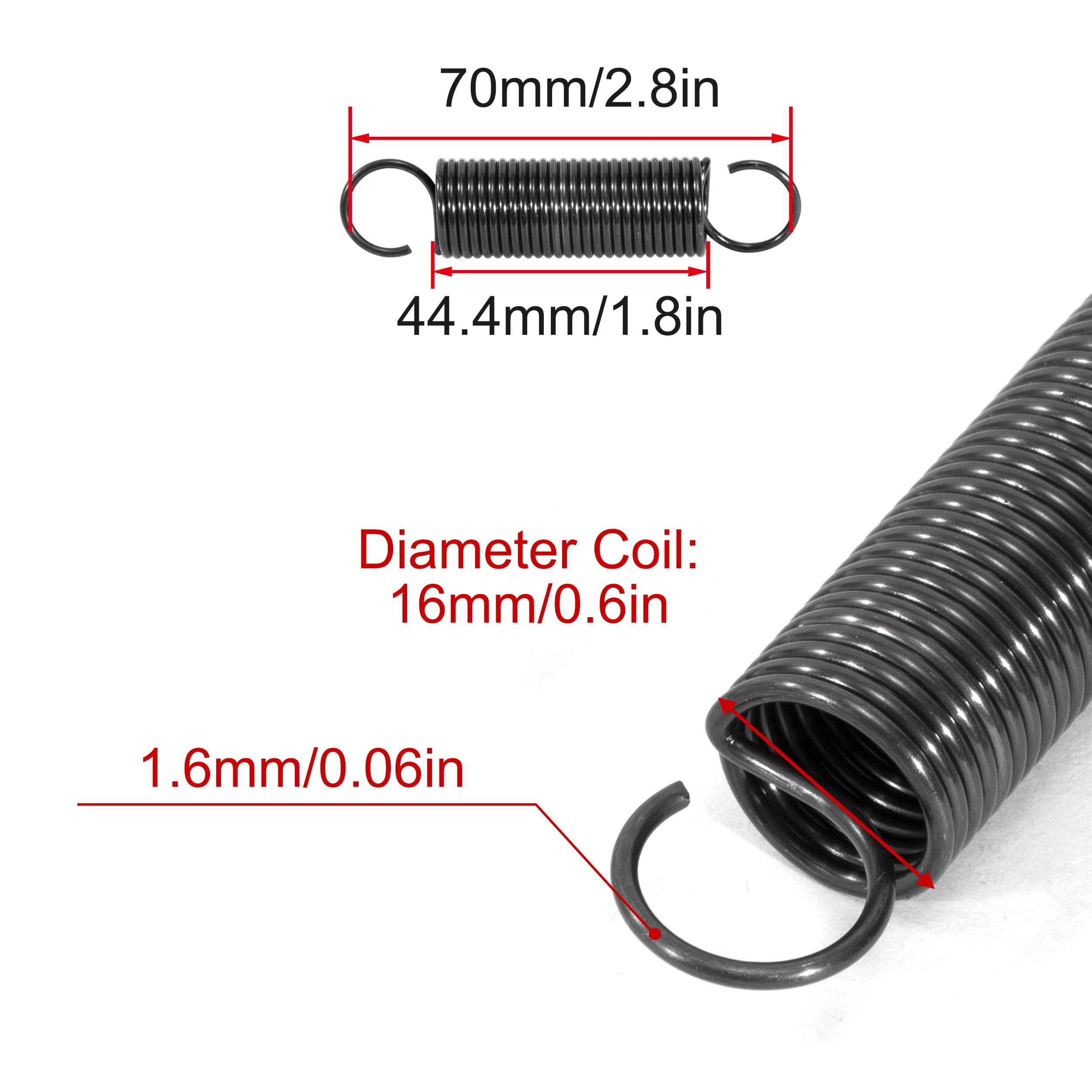 GUNGY Ressorts à traction 70 mm Ressort de traction Double crochet Longueur de traction maximale: 23,1mm. Ressorts Double Crochet 5kg Ressort De Traction 70mm Ressorts De Tension Avec Crochets Ressorts En Ressort Mécanique élasticité -Ressort de tension à double crochet, se connecte facilement aux cordons, sangles de tension, mousquetons et autres œillets. -Ressort de tension de haute précision, surface polie, lisse et sans bavure, longue durée de vie. Spécifications: Ressort de Traction avec crochet, diamètre du fil: 1,4 mm, diamètre extérieur: 10mm, longueur statique: 70mm. Caractéristiques: -Ressort de Traction avec crochet, Diamètre du fil: 1,4mm, Diamètre extérieur: 10mm, Longueur statique: 70mm. Solide et respectueux de l'environnement : le ressort de tension est fabriqué en Fil de piano (SWP) importé du Japon et est conforme à la certification RoHS. Il présente une résistance élevée, une bonne élasticité et une longue durée de vie. Performance: traitement de polissage de surface à ressort, lisse et sans bavure. Largement applications: largement utilisé dans les tentes extérieures, les trampolines, les jouets, les équipements de fitness, les appareils électriques, les automobiles et d'autres domaines.