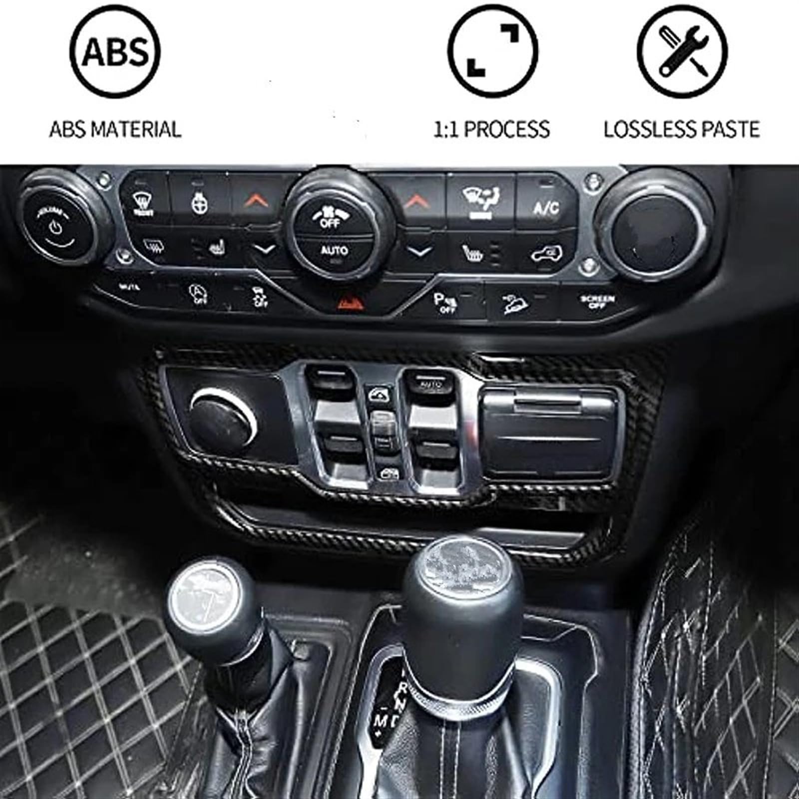 Garniture de panneau de changement de vitesse 4WD aspect fibre de Matériau de haute qualité : la garniture du panneau de changement de vitesse est fabriquée à partir de fibre de carbone avec revêtement époxy, résistant à l'usure et aux rayures, imperméable, ne se décolore pas facilement, durée de port Décoration Intérieur Jeep Wrangler JL Revêtement D'habillage De Changement De Vitesse Intérieur De Revêtement Panneau Vitesse Décorez votre voiture de manière charmante et vivante. Revêtement d'habillage de panneau de changement de vitesse en Fiber de carbone, accessoires d'intérieur de décoration Empat pour Jeep pour Wrangler JL 2018 – 2023 Revêtement d'habillage de panneau de changement de vitesse en Fiber de carbone, accessoires d'intérieur de décoration Empat pour Jeep pour Wrangler JL 2018 – 2023 Il est extrêmement durable et protégera vos panneaux intérieurs de l'usure quotidienne et des rayures. Décorez l'intérieur de la voiture et rendez votre voiture unique conception intérieure ordinaire de la voiture et y... Un look pour les panneaux intérieurs de votre voiture. Résistant à l'eau, longue durée. Fabriqué selon le moule d'origine, ajustement et qualité Offre une excellente protection pour votre voiture