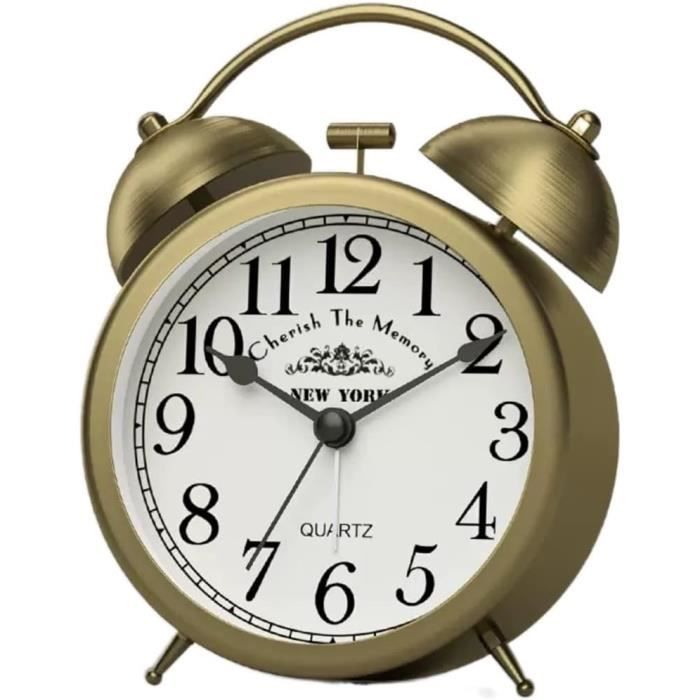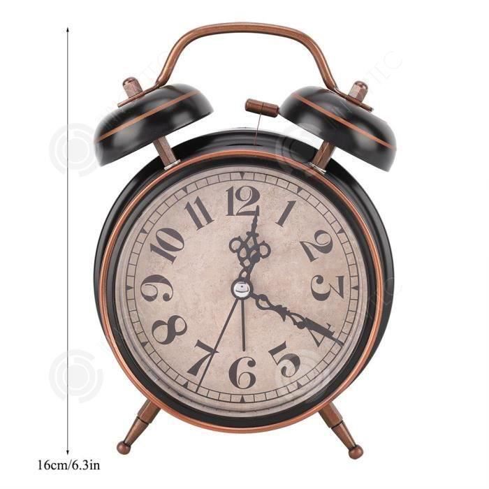 Réveil Vintage Mini Réveil Métal À Double Cloche Alarme, Reveil Cloche Classique, Mini Rétro Alarme Réveil, Pour Réveil Voyage Métal Réveil fort pour adultes dormeurs lourds, quartz silencieux sans tic Il a une veilleuse pour voir l'heure la nuit. Fonctionne avec une pile AA (non fournie). Cadran de 3 pouces, design noir classique. Parfait pour la chambre, le... Il mesure 7,6 cm, mini et mignon. C'est le cadeau parfait pour les enfants, les amis, la famille, etc. Silencieux sans tic-tac : la trotteuse se déplace sans faire de bruit gênant, ce qui la rend parfaite pour le travail et le sommeil. Contenu de l'emballage : 1 mini réveil créatif Design rétro chic : notre réveil est un ajout intemporel à tout style de décoration avec son design classique à double cloche et sa finition métallique mise à jour. Facile à utiliser : notre réveil n'a que quatre boutons : deux cadrans pour régler l'heure et l'alarme, un interrupteur d'alarme pour allumer/éteindre l'alarme, et un bouton veilleuse pour vérifier l'heure dans l'obscurité. Utilisations multiples : l'horloge de table mignonne pour un bureau, une salle de classe, une chambre, un salon, une salle de lecture, un restaurant, un bureau et plus encore. Design mignon : ce réveil est analogique et moderne, et il peut également être utilisé comme décoration d'intérieur. Il combine fonctionnalité et style