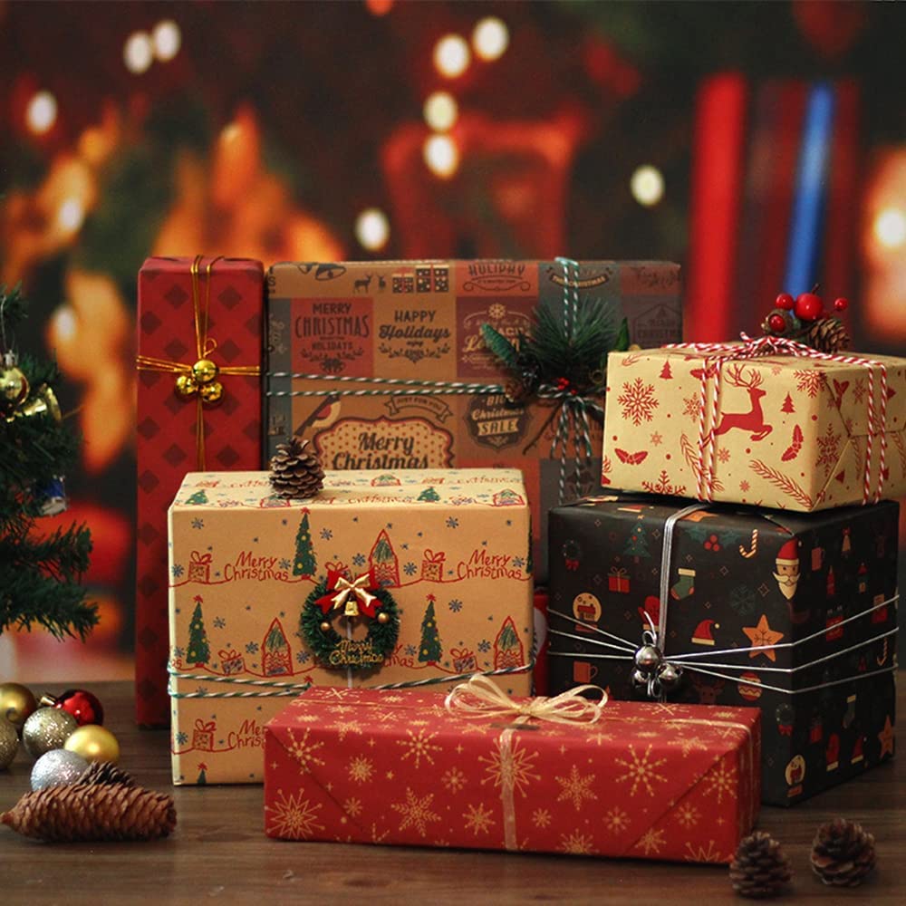 Papier Cadeau Noël Ribbli Lot De 6 Rouleaux De Papier Cadeau De Noël – Papier Kraft Rouleau Papier Noel Creative Deco 1kg Frisure Papier Déchiqueté Papier Kraft Rouge | Papier... De Noël Cadeau Papier Nouveau Rétro Noël Kraft Papier d'emballage Multifonction : ces emballages de Noël peuvent être utilisés pour emballer des cadeaux et des bouquets, et peuvent également être utilisés comme nappes ou papiers peints, etc. Mains tenant un cadeau de Noël en papier kraft rouge avec étiquette et... Occasions applicables : ces emballages sont adaptés pour les fêtes de Noël, les fêtes prénatales de Noël, les fêtes d'enfants de Noël, les mariages de Noël ou toute autre fête sur le thème de Noël, et peuvent ajouter une forte atmosphère festive à vous. Papier cadeau de haute qualité : notre papier cadeau plat est fabriqué en pâte de bois de haute qualité, respectueux de l'environnement et recyclable, durable et pas facile à déchirer. ce qui en fait le meilleur choix pour l'emballage de cadeaux de Noël. Veuillez vérifier si la taille du papier cadeau est adaptée pour l'emballage de votre cadeau avant d'acheter.