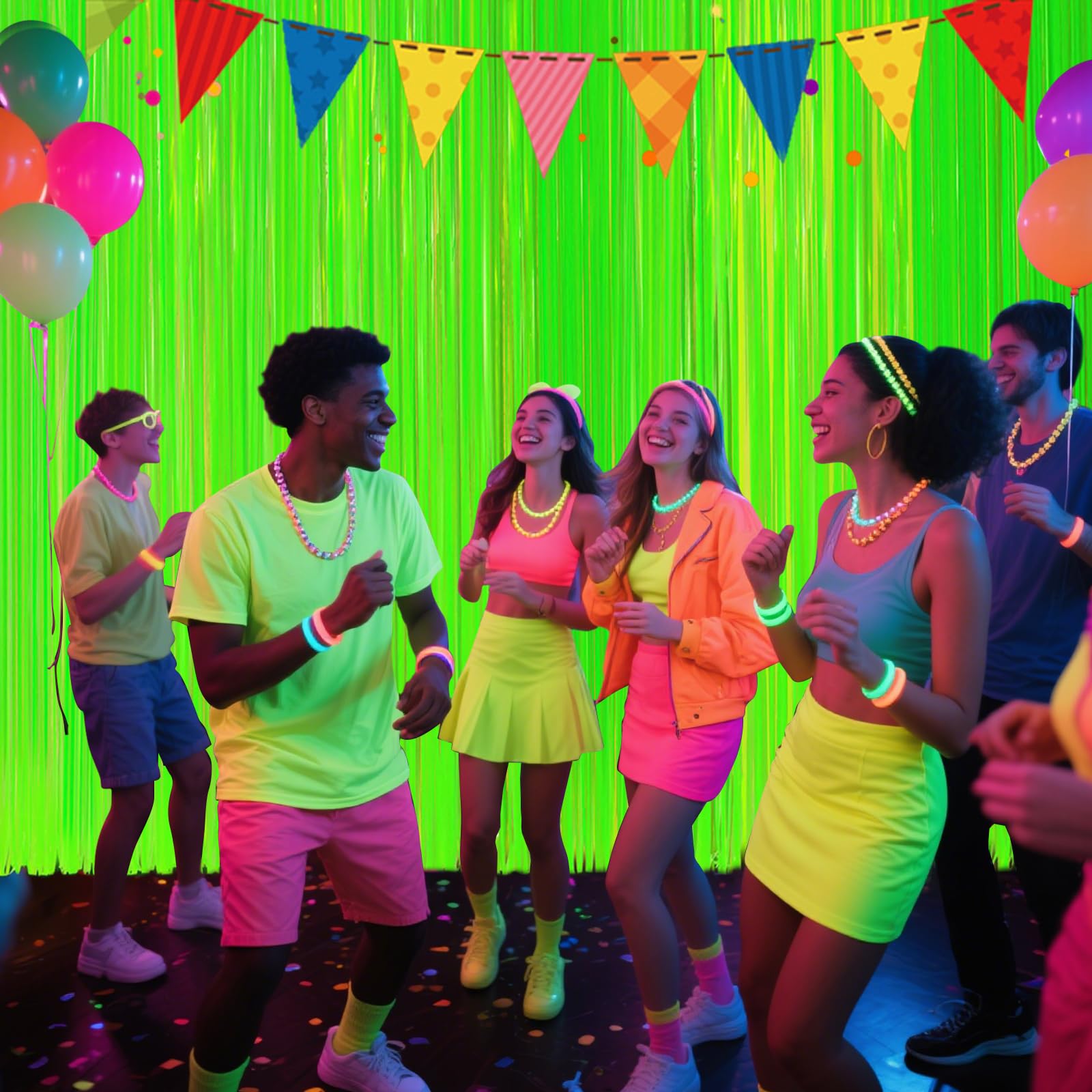 2 Pièces Noir Rideau Métallique de Frange Brillant Rideau à Franges 【Décorations de fête Néon】L'ensemble comprend 2 rideaux métalliques néon vert, mesurant chacun 1 m x 2 m, parfaits pour créer une ambiance de fête dans votre chambre, apportant plaisir et surprises. Rideau Aluminium Néon Vert Fête Anniversaire TAXTYHRE 2 Pièces Rideau D'aluminium Néon, Rideaux Franges Rideau Métallique événement Remarque: Les rideaux à franges ne brillent pas et nécessitent une lampe UV pour créer un effet néon. Rideaux à franges décoratifs - TBEST - 3m x 1m - Rouge, blanc, bleu... Rideau de porte rouge métallique avec franges 2m x 1m (x1) REF/RFMR... 【Décoration de fête exquise】Nos magnifiques rideaux à franges sont colorés et créent une ambiance festive. 【Facile à utiliser】Décollez le ruban adhésif double face et collez les rideaux à franges de fête sur le dessus de l'emplacement souhaité, adaptés aux portes, fenêtres, murs, salons, toiles de fond de table à dessert et décorations de fond de scène. Ils créent une atmosphère colorée et un effet visuel qui vous surprendra à coup sûr ! Nos rideaux à franges sont parfaits pour les anniversaires, les mariages, les baby showers, les anniversaires de mariage, les boules disco, les boîtes de nuit, les décors de Noël, et bien plus encore, ajoutant de l'éclat à vos célébrations. Remarque: Les rideaux à franges nécessitent une lampe UV pour créer un effet néon. Caractéristiques: Ces rideaux à franges sont durables, résistants aux déchirures et sont disponibles dans des couleurs vives qui peuvent être réutilisées pour d'autres fêtes.