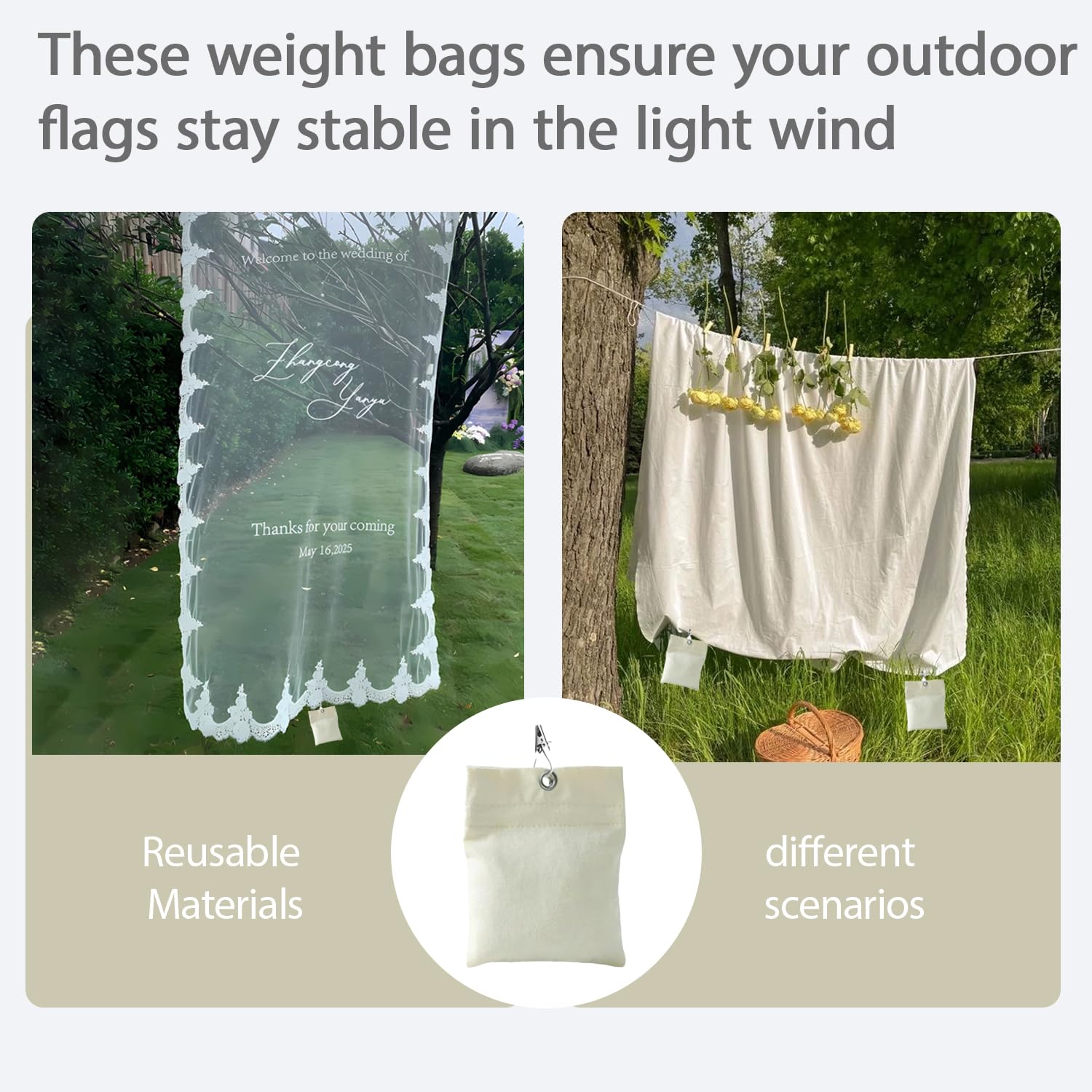 Les lestages sont durables et les sacs en PVC sont lavables et réutilisables. 【Lot Complet】 Ce lot de poids pour rideaux inclut 6 sacs de poids en tissu, 6 sacs en PVC refermables et 6 pinces métalliques – tous les composants nécessaires pour l’utilisation en extérieur, sans besoin d’accessoires supplémentaires. 【Stabilité en Cas de Vent】 Ce système contribue à maintenir les rideaux d’extérieur, nappes, drapeaux et autres textiles en place lors de vents légers, garantissant leur position stable. Pas de couture, pas de perçage, le tour est joué ! Lot de 6 500L Sacs de Déchets Jardin Résistants en Polypropylène - Sacs Idéal pour le jardin, la terrasse, le camping ou les pique-niques. Mode d'emploi : Remplissez simplement un sac en PVC refermable de sable, de pierres ou de terre, placez-le dans les lestages et fixez-le à la position souhaitée avec les pinces métalliques. 1 offre à 35,08 € Filtres Livraison gratuite Prix croissant Pertinence Prix croissant Prix décroissant Prix total croissant Prix total décroissant ChenQuanSarl-Lot De 6 Sacs Lestés Pour Rideaux D'Extérieur - Avec Pinces En Métal - Lestage Pour Sac De Sable - Sacs De Poids Portables Pour Nappes De Jardin, Pavillon, Terrasse, Rideaux Produit neuf ★ 4.7 / 5 Plus d'informations 35,08... Ils s'intègrent bien aux fêtes de jardin, aux activités de camping et autres moments en plein air. Quand le vent se lève, vos rideaux, nappes ou drapeaux flottent – avec le kit de lestages pour rideaux d'extérieur XHWOLGARIAN, vos textiles resteront bien en place. Ils protègent efficacement le matériau de remplissage et s’adaptent aux conditions extérieures. Kit Lestage Rideaux Lot De 4 Poids De Rideau D'extérieur - Imperméables - Poids Noirs - Aimants En Bas - Lestage Pour Rideaux Et Nappes Poids Rideau Exterieur Sacs de Sable Remplissables BaseMate pour Poids de Socle Extérieur – 2... 【Polyvalence d’Utilisation】 Conviennent non seulement aux rideaux extérieurs, aux gazebos et aux tentes, mais aussi à la fixation de nappes, de rideaux de douche et de couvertures de pique-nique.