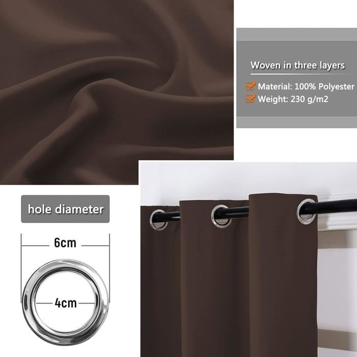 Idéaux pour le salon, la chambre à coucher, la cuisine ou même comme séparateurs de pièces, ces rideau occultants répondent à tous vos besoins de confort et de style Conservez leurs couleurs vibrantes avec un simple lavage en machine. Après avoir suspendu ces rideaux occultants, votre maison deviendra un lieu charmant où vous passerez des moments mémorables avec votre famille et vos invités. Caractéristiques clés et avantages : ● Profitez d'une tranquillité totale avec nos rideaux occultants bloquant 100% de la lumière pour un sommeil paisible. Isolation Thermique Et Phonique CozyRest Rideaux Occultants Chambre Enfant Feuilles Vertes Et Oiseaux Rideaux Anti-bruit Polyester ● Design polyvalent : Ajoutez une touche de sophistication à la chambre de vos enfants, salle de jeux, ou espace de vie avec notre design élégant à oeillets. Faciles à installer grâce à leur design à œillets, ils sont parfaits pour nurseries, chambres d'enfants, chambres et salons, et font d'excellents cadeaux pour Halloween ou Noël. [Vivre Des Moments PréCieux:] Imaginez-vous savourer un café tranquille le matin, à l'abri des regards extérieurs, ou passer une soirée agréable avec vos proches dans une ambiance apaisante. Offrez-vous le luxe de la sérénité et de l'intimité dans votre foyer avec nos rideau Beautissu Lot de 2 Rideaux Thermique Marron uni opaque à oeillet Amelie Nombre d'articles : Ensemble de 2 panneaux. Saisons : Convient pour toutes les saisons. De plus, notre engagement envers la satisfaction client est renforcé par notre politique de retour flexible, vous permettant d'acheter en toute confiance. [Pour Tous Les Espaces De Votre Maison:] Que vous soyez un professionnel cherchant à réduire le bruit dans votre bureau à domicile, un parent désirant un environnement calme pour vos enfants, ou tout simplement quelqu'un qui veut un contrôle total de la lumière, ces rideau sont faits pour vous. Découvrez notre sélection de rideaux pour enfants, spécialement conçus pour égayer leur univers et apporter de la magie dans leur chambre. Quels types de rideaux choisir pour une chambre d'enfant ? Les rideaux occultants bloquent la lumière extérieure et favorisent un sommeil réparateur Deconovo Lot de 2 Rideaux Occultants Isolant Thermique Rideaux pour... Motif du rideau : Peinture. [Taille AdaptéE:] Chaque paquet comprend 2 panneaux de rideau occultant, chacun mesurant 70 cm de large x 160 cm de longueur. Découvrez la différence dès aujourd'hui ! Grâce à la technologie de triple tissage, ces rideaux occultants offrent une isolation efficace, bloquant jusqu'à 100 % de la lumière et réduisant significativement le bruit pour garantir votre intimité [éLéGance Et Style:] Avec leur texture soyeuse et luxueuse, nos rideau occultants ne sont pas seulement fonctionnels, mais aussi esthétiques. Notre service client est à votre disposition pour garantir votre satisfaction.