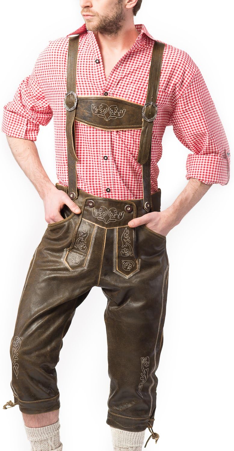 Travail de détail La Lederhose Flachau est équipée d’un plastron brodé avec soin et de bretelles solides et réglables avec boucles en métal. Design : Avec son design classique et authentique, ce lederhosen attire tous les regards. Les lederhosen sont livrées avec des bretelles réglables assorties, qui complètent votre look et vous évitent d'avoir à acheter des accessoires supplémentaires. Ici le confort se combine avec la tradition pour un plaisir sans souci lors de chaque fête. Bretelles homme - cuir véritable & élasthanne - 3,5x120cm - bleu Vous êtes à la recherche de la tenue idéale pour votre Oktoberfest ? Alors ce lederhosen Flachau est exactement ce qu'il vous faut ! Coupe réglable design traditionnel Les bretelles réglables se croisent dans le dos et assurent un ajustement optimal que tu sois en train de danser ou assis. Bretelles en cuir - Les bretelles en cuir véritable. Fabriquées à la... Matériau de haute qualité : l'utilisation de 100% de cuir de vachette garantit une expérience durable et confortable, année après année. Des boutons solides et une finition de haute qualité garantissent un confort durable. Les détails subtils et le savoir-faire artisanal sont clairement visibles et confèrent au pantalon un aspect luxueux. Pantalon Traditionnel Oktoberfest Oktoberfest Homme Tannhauser Lederhose Lech Short Avec Riem Et Bretelles 100 % Cuir De Chaussettes Oktoberfest Homme 100% Cuir Vachette Broderies Product Description Lederhose Flachau - Pantalon traditionnel allemand Oktoberfest pour homme en cuir de vachette 100 pour cent avec bretelles réglables. Pour chaque fêtard Que tu sois à l'Oktoberfest avec des amis ou que tu assistes à une soirée à thème, avec la Lederhose Flachau tu es toujours habillé de façon élégante et festive En outre, les lederhosen sont dotés de deux poches latérales.