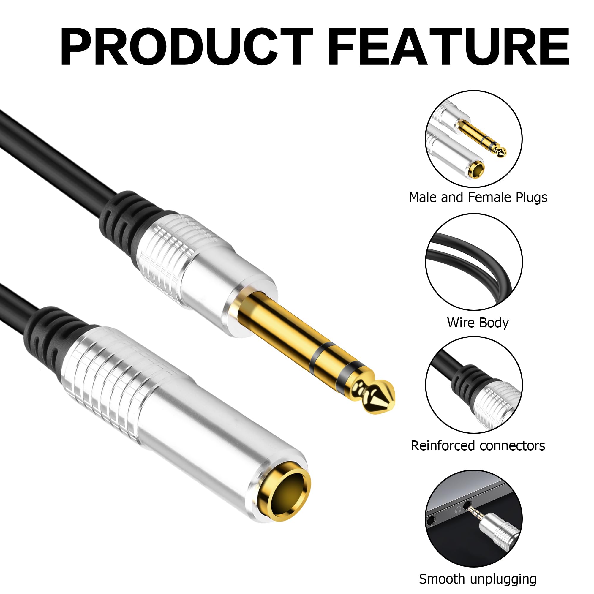 Câble audio HiFi stéréo 6,35 mm vers 2 câbles répartiteurs en Y Câble Audio 6.35 Mm Riertostng Lot De 2 Câbles Audio 6,35 Mm Vers Câble Nu, à Câble Audio 6.35mm Ce câble audio à bout ouvert de 6,35 mm peut réparer ou remplacer les câbles de microphone et de haut-parleur endommagés. L'extrémité du câble nu peut être bricolée pour d'autres connecteurs, ce qui permet d'économiser de l'argent et du temps Fil nu à 2 broches DIY : le fil nu mâle de 6,35 mm vers 2 broches, peut être utilisé pour d'autres connecteurs, connecter des haut-parleurs, des microphones, des amplificateurs, des appareils audio, des appareils DJ, des mixeurs, des récepteurs stéréo, des récepteurs audio et vidéo, des équipements de système home cinéma, etc. Câble audio 6,35 mm - DIOCHE - Mâle vers Double Mono - Alliage d... 【Matériaux de haute qualité】 Utilisez des matériaux en PVC respectueux de l'environnement, résistants aux rayures, résistants à l'usure, souples, peuvent se plier librement, ne pas éclater, utiliser pour une longue durée de vie. Câble 22 AWG : câble audio mono femelle mâle de 6,35 mm, fabriqué en cuivre pur 22 AWG, le cuivre a une faible résistance et une bonne conductivité électrique, offre un courant stable, assure une qualité sonore claire, pas de bruit, pas de bourdonnement.