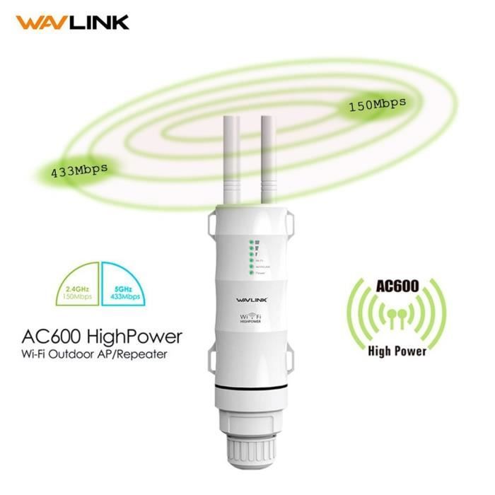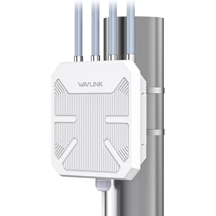 Couverture étendue - Étendez votre réseau sur de longues distances (max. Deux amplificateurs haute puissance intégrés offrent une couverture et une pénétration Wi-Fi exceptionnelles, étendant considérablement la couverture Wi-Fi et éliminant les zones blanches. Prise en charge de l'alimentation par Ethernet (PoE) intégrée, transférant les données et chargeant le produit avec un seul câble Ethernet RJ-45., Plus durable : Son boîtier étanche IP65 et sa protection contre la foudre 4 kV garantissent un fonctionnement continu dans les environnements extérieurs difficiles ou les climats extrêmement froids, chauds ou humides en permanence. Que vous regardiez des vidéos HD en streaming ou jouiez en ligne, profitez de performances sans latence et de débits supérieurs., Rapide et fluide ! Wavlink AC600 Répéteur Wifi D?extérieur Double Bande Modèle PoE Passif Modes Point D Acces Sans Fil Repeteur Router Wisp Portee De 1 2068365307 L 100 mètres) grâce à 4 antennes 7 dBi à gain élevé. Point d'accès sans fil bi-bande - Équipé de la dernière technologie IEEE 802., 11ac, ce point d'accès sans fil offre des performances bi-bande allant jusqu'à 867 Mbit/s sur 5 GHz et 300 Mbit/s sur 2,4 GHz. Ap / répéteur / routeur wi-fi – wavlink ac1200 - double bande 2,4/5 ghz... Installez les antennes extérieures à 2 mètres au-dessus du toit ou dans un endroit dégagé en hauteur pour une meilleure réception. Spécifications : Fréquence : 2,4 GHz et 5 GHz, débit jusqu’à 1 200 Mbps Interfaces : 1 LAN 10/100/1 000 Mbps ; 1 WAN 10/100/1 000 Mbps Antennes : 4 antennes omnidirectionnelles 7 dBi Modes de fonctionnement : Répéteur, Point d’accès, Extension de réseau maillé Boîtier résistant aux intempéries : Protection contre les décharges électrostatiques (DES) de 15 kV et la foudre de 4 kV Sécurité : WPA2-PSK, WPA 2/WPA 3 mixte Voyants : 7 voyants d’état Adaptateur secteur : 100-240 V/50-60 Hz ; 24 V CC (PoE passif) Mode point d'accès : Convertissez un réseau filaire en réseau sans fil, ce qui vous permet de connecter des ordinateurs portables, des tablettes, des téléphones ou d'autres appareils Wi-Fi. Range Extender Aerial Hd4 Ripetitore Wifi Répéteur WiFi Extérieur Wavlink AC1200 - Portée Répéteur Wifi AC1200 IP65 Le mode répéteur étend la couverture Wi-Fi d'un réseau sans fil existant. Le mode routeur crée un réseau sans fil privé instantané, permettant à plusieurs appareils de le partager. Le mode point d'accès convertit un réseau câblé en un réseau sans fil Remarque : Compatible avec la norme 802., 3at/af ou avec un adaptateur ou un commutateur PoE 48 V actif.
