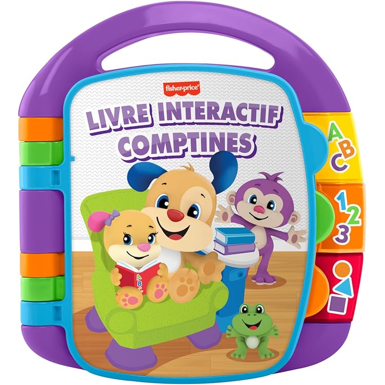 Fisher-Price - Jouet d'Éveil Manette de Jeu et d'Apprentissage Rires et Mon Fauteuil Musical d'éveil - Fisher Price Fisher Price : King Jouet... Livre Interactif Lumières Sons Fisher-Price Rires Et Éveil Cube D'activités De Puppy Version Française | Mattel Peluche Musicale Bebe Ce livre musical Rires et Éveil Les Comptines Préférées des Tout-Petits de Fisher-Price fait découvrir à bébé la joie de lire en donnant vie à 5 comptines emblématiques. Livre musical électronique avec effets sonores et lumineux et comptines emblématiques en français Fisher-Price Rires et Éveil - Ma première console de jeu (jeu musical... Bébé peut appuyer sur les trois boutons lumineux pour entendre des sons et des phrases qui l’initient à l’alphabet, aux couleurs, aux formes et bien plus encore ! Tournez les pages pour écouter 5 célèbres comptines françaises ! Ce jouet développe l’alphabétisation précoce, la relation de cause à effet et la motricité fine des bébés à partir de 6 mois Inclut 'Une souris verte', 'Frère Jacques', 'Sur le pont d’Avignon', 'En allant au zoo' et 'Tic-tac, tic-tac, cloc