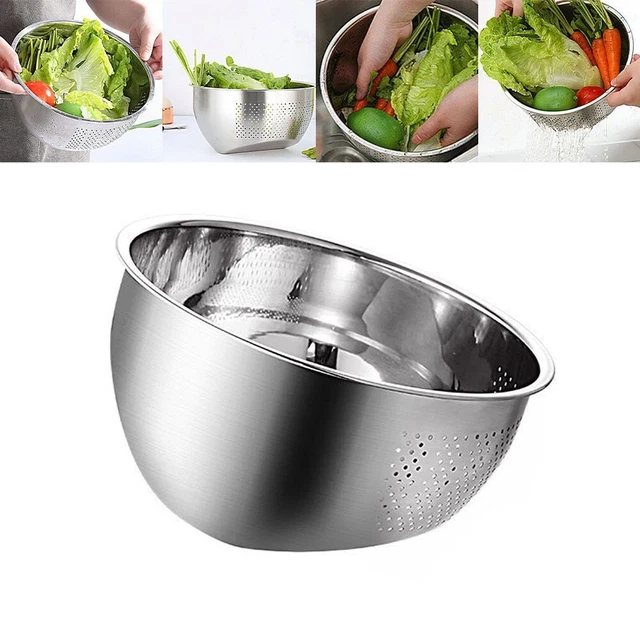 CNKOO Passoire Empilable en Acier Inoxydable et Ensemble de Bassins à Mélanger Passoire de Cuisine Bassin de Lavage de Riz Bol Passoire à Salade Ensemble Passoire à Riz pour Cuisine Restaurant Matériau de qualité : conçu pour une durabilité durable grâce à l'acier inoxydable de qualité alimentaire avec protection contre la corrosion. Bol Passoire à Riz Acier Inoxydable Bol Passoire à Riz - Bol De Lavage Pour Quinoa, Rinceur | FindTheDeal Passoire Intelligente Spécification : Nom du produit : passoire à riz Matériau du produit : acier inoxydable 304 Poids du produit : petit : 240 g, grand : 310 g Dimensions du produit : Petit : environ 22,5 x 11,5 cm. Le à riz en acier inoxydable offre une fonctionnalité multifonctionnelle essentielle pour chaque cuisine. Du rinçage des céréales au lavage des légumes, ce est un ustensile de cuisine indispensable qui deviendra rapidement un incontournable de votre maison Bol de lavage 2 en 1 avec passoire en acier inoxydable - Râpe à riz - 22,5 cm - Passoire à pâtes - Passoire sur pied - Bol avec passoire pour quinoa... Passoire double face : passoire à riz double face avec structure de bord renforcé. La finition polie miroir souligne l'aspect élégant et résiste efficacement à une utilisation quotidienne dans la cuisine. Prévient la déformation et les fissures, offre une capacité de charge accrue pour un fonctionnement durable au quotidien. Il rince efficacement, verse les pâtes et prend en charge diverses tâches de préparation des aliments. Expérience de cuisson optimisée : conçue pour une utilisation comme passoire à fruits, bol à légumes, récipient à céréales et nettoyeur de riz. Cette passoire à riz agit comme un outil multifonction parmi les gadgets de cuisine et est idéale pour la cuisine, le lavage et la préparation des repas.
