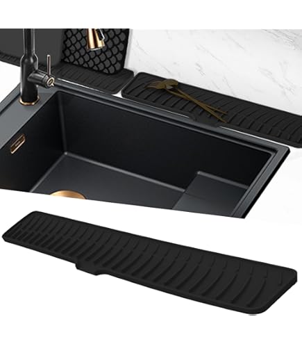 Pas besoin d'acheter des éviers supplémentaires, d'économiser de l'argent et de l'espace dans l'évier. Tapis Robinet Anti éclaboussures évier Cuisine Silicone 2PCS Tapis De Robinet En Silicone, Protection Contre Les éclaboussures D'évier, Tampon De Tapis De Robinet Anti éclaboussure MEERESN Protection Anti-éclaboussures de Robinet en Silicone, Tapis de Robinet Absorbant Tapis de vidange Tapis de Protection de comptoir Accessoires de Cuisine pour Salle de Bain RV Cuisine (Gris) Le tapis de robinet en silicone a une conception d'ouverture unique, facile à installer et s'adapte parfaitement autour du robinet et fixe le tapis à la base du robinet et aucune découpe nécessaire, convient à la plupart des robinets de cuisine. Tapis de robinet en silicone Installez-les simplement directement sur le comptoir du robinet pour ne pas avoir à essuyer le comptoir de l'évier à chaque fois. Le tapis de robinet d'évier de cuisine, facile à nettoyer et durable, peut être lavé à la main ou à la machine et séché à l'air en peu de temps. KEENSO Tapis de récupération d'eau de robinet en silicone Tampon absorbant de robinet... Le tapis de robinet en silicone a une conception d'ouverture unique, facile à installer et s'adapte parfaitement autour du robinet et fixe le tapis à la base du robinet et aucune découpe nécessaire, convient à la plupart des robinets de cuisine. 【Version améliorée 2022】Conçu pour les pare-éclaboussures des robinets de cuisine, en silicone de qualité alimentaire. 【Meilleurs accessoires d'évier】 14,6 x 5,5 x 0,61, le diamètre du trou central est réglable, adapté au diamètre du robinet inférieur à 2,5. Tapis de protection anti-éclaboussures pour évier de 76,2 cm, plateau récupérateur d'égouttement La version améliorée ajoute une conception inclinée, le tampon anti-éclaboussures pour évier de cuisine peut collecter des gouttes d'eau lorsque vous vous lavez les mains ou effectuez d'autres activités de nettoyage, et l'eau s'écoulera automatiquement dans l'évier, gardez toujours votre plan de travail propre et bien rangé. Peut être utilisé pour contenir du savon, du savon à vaisselle, une tasse, une éponge, une brosse à récurer et plus encore., .