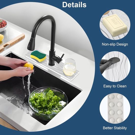 Il ne convient pas seulement aux cuisines, mais aussi aux salles de bains, aux caravanes, aux cuisines, aux sols, etc. Tapis Diatomite Pour Cuisine Plateau Absorbant Durable Robinet Tapis Absorbant Robinet Cuisine 45x10cm - Pierre De Diatomite - Anti-gouttes Et Séchage Rapide Tapis Diatomite Salle De Bain Moderne Tapis évier Salle De Bain Antidérapant Des articles de toilette, des accessoires, etc. Ailutuo Tapis de Bain Diatoite, Tapis Diatoite, Stone Bath at à... 【Conception réglable】 Les petits trous coupés au milieu du coussin de vidange de l'évier peuvent parfaitement s'adapter à la taille de divers robinets. Le dos a un design pliable à 90 °, qui est simple à concevoir, mettant en évidence la qualité et le style. Tapis de robinet pour évier de cuisine, plateau d'évier en pierre absorbant l'eau, robinet d'évier à séchage rapide, tapis en Diatomite pour comptoir de salle... Anticroupement et anti-casse-casse-calash, absorbant l'eau et séchage rapidement. peuvent être placés. S'il y a une tache, vous pouvez le laver et le sécher avec de l'eau savonneuse pour une longue durée de vie. Tapis robinet diatomite 61 cm, séchage rapide, anti-humidité L'épaisseur est modérée, légère et facile à déplacer, 0,9 cm d'épaisseur mince et or, facile à utiliser et à stocker et durable. 【Adhésion forte】 La surface du coussin de vidange de l'évier a été finement polie pour former une texture unique, une friction modérée et est posée sur le bord du lavabo, s'adaptant fermement, et elle est stable et pas facile à glisser même si elle est éclaboussée.