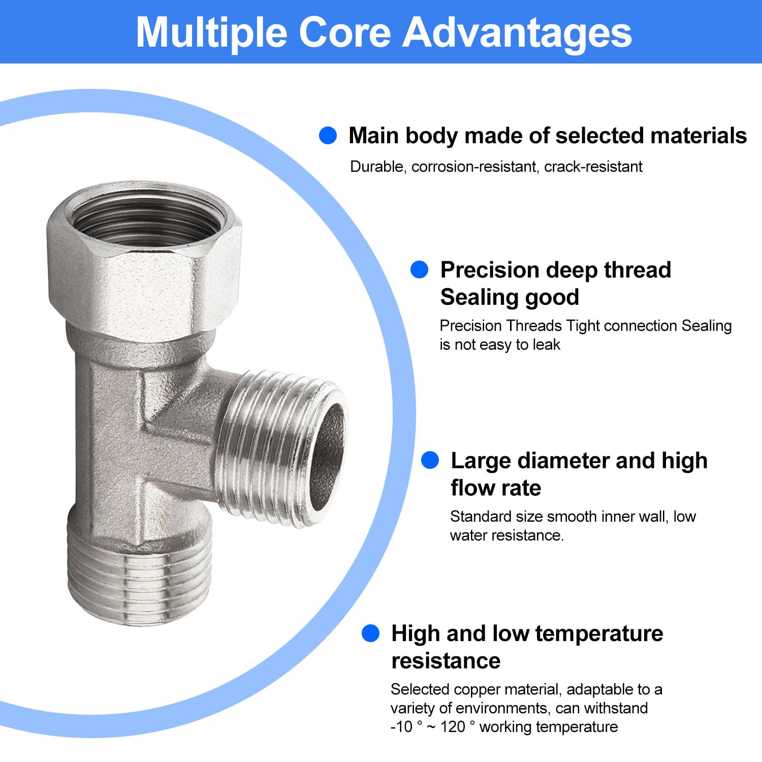 Vanne à boisseau sphérique - SURENHAP - 1/2 - Laiton - Régule air, huile, eau - Entretien... Installation facile : Conçus pour simplifier l'installation, ils sont disponibles avec des raccords enfichables ou filetés, qui peuvent souvent être raccordés sans outils spéciaux, ce qui les rend pratiques et commodes. Utilisations multiples : Largement utilisés pour ajouter des becs aux robinets de vidange des machines à laver, des toilettes, des robinets, etc. Raccord En T 1/2 2 Pièces Mini Robinets à Boisseau Sphérique Avec Vanne 3 Voies Fils Internes Et Externes A 4 Points Pivotant A 90 Raccord En T 12 Convient Pour Les Toilettes De La Salle De Bains Argent 92122946 Robinet Wc Equerre Embranchement multidirectionnel : La configuration à trois voies en forme de T permet au tuyau de s'embrancher dans plusieurs directions, ce qui convient à une variété d'applications de plomberie et garantit un écoulement de l'eau sans obstruction. Vanne a boisseau spherique 1 Type total Détails du produit : 1., Les raccords en T sont flexibles et leur conception durable garantit des performances à long terme., 2., L'écrou de blocage amovible en option permet une installation facile et sans effort de la prise., 3., La conception de l'interrupteur rotatif assure une longue durée de vie pour une variété d'applications de plomberie. Guide des robinets à tournant spherique à une, deux et trois pièces