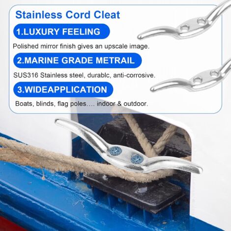 Taquet Amarrage Yacht Acier 316 100mm Taquet De Bateau, Base Ouverte Robuste Taquet De Quai De Bateau En Accessoire Yacht Pêche Robuste Taquet De Pont Taquet 'arrimage De Bateau Poli Robuste De 4 Pouces Pour Dilwe taquet de bateau à tirer Taquet de bateau de 6 pouces en acier... Cette attention portée à l'ajustement signifie que vous pouvez compter sur le taquet pour assurer un amarrage sécurisé, que vous accostiez dans une marina ou que vous ancréez en eau libre. FABRICATION EN ACIER INOXYDABLE : Fabriqué à l'aide d'une technologie allemande avancée de fabrication d'acier inoxydable, ce taquet de bateau est doté d'une soudure de haute technologie et d'un polissage à la main pur. Ce processus de production méticuleux garantit une stabilité et des performances durables, même dans des environnements marins difficiles MODÈLE APPLICABLE : Le taquet de bateau robuste est spécialement conçu pour remplacer les yachts, les navires et les bateaux de pêche. Son design élégant et compact complète le style général de votre bateau, ce qui en fait un ajout attrayant Cette caractéristique est cruciale pour les bateaux fréquemment exposés à l'eau salée, garantissant que le taquet conserve son intégrité et sa résistance dans le temps. FACILE À INSTALLER : L'installation du taquet de bateau robuste est simple et rapide, ne nécessitant que des vis pour le fixer à la plaque de base. Omabeta taquet de quai Taquet de bateau à Base ouverte, robuste, en...