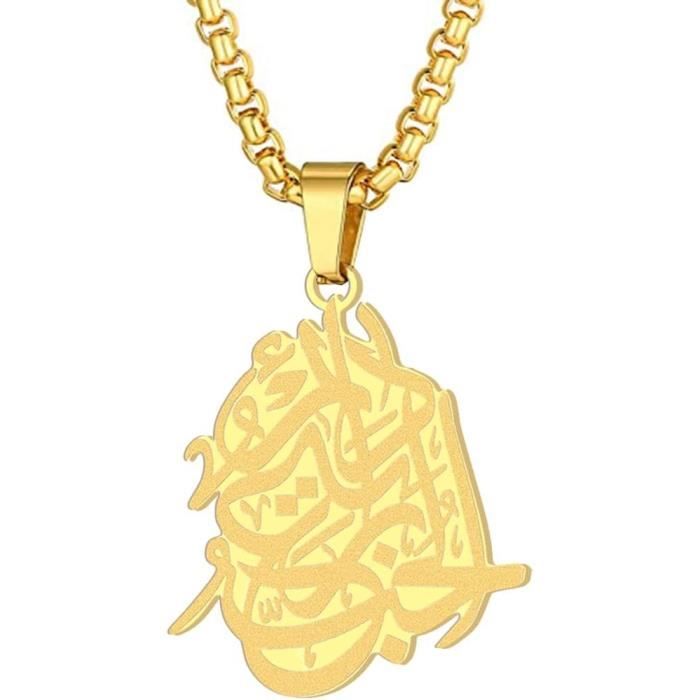 PROSTEEL Collier Femme Pendentif Forme Allah Serte de Zirconium Bijoux Simple Religieux en Acier Collier Homme Lampe D'Allah JewelryWe Collier Pendentif Aromathérapie Rond Boîtier Evidé Motif Arbre De Vie Diffuseur D Bijou Homme Style Classique Coller homme, mn coller pendentf en or pour homme, coller pour... Excellent matériau, facile à porter, design spécial, style classique. Coller à pendentf médalle ronde Allah arabe en acer noxydable... Longueur de la chaîne : 70 cm x 0,25 cm ; poids : 35 g, Condition : 100 % neuf Longueur du pendentif : 4,4 x 1,6 cm