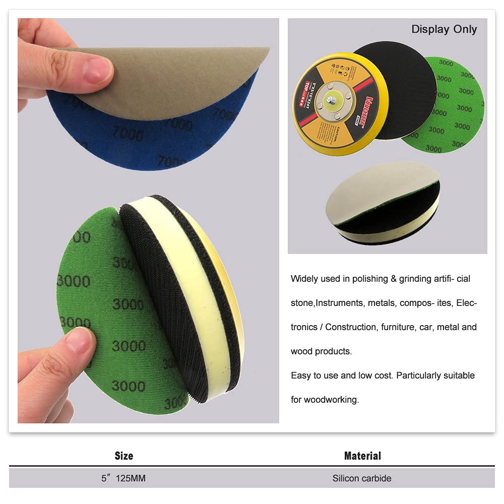 Lot de 10 disques de ponçage 125 mm - Papier abrasif humide et sec - Grain 60-10 000 - Pour voiture, bois, métal, plastique, polissage Disques Abrasifs En Forme De Diamant 125 Mm Grain 400, Papier De Verre... Papier Poncer Lot De 10 Disques Abrasifs Ronds à 8 Trous - 125 Mm - 8 Trous - Étanches - Pour Ponçage Humide/sec - Pour Polissage De Voiture - 800 Abrasifs Humide Sec Lot de 24 Disques Abrasifs 125 mm, Papier de Verre Sec à l'eau,Papier a Poncer Carrosserie,8 Trous 125mm Disques de Ponçage,Grain 320/600/800/1000/1200/1500/2000/3000 pour Voiture, Métal, Bois Le papier de verre a un grain régulier et constitue un bon choix pour le ponçage et le polissage. 60pcs disques abrasifs auto-agrippants de 125 mm, 8 trous, disques... ENSEMBLE DE PAPIER SABLE : Le paquet contient 24 pièces de disques de papier de verre de 5 pouces à 8 trous, de grains 320/600/800/1000/1200/1500/2000/3000, 3 pièces de chaque grain, les marques de grain se trouvant au dos du disque abrasif 125mm. Papier de verre humide et sec : le papier de verre 8 trous disque abrasif 125mm peut être utilisé à la fois humide et sec. LARGE APPLICATION : la ponceuse excentrique 125 mm 125mm disques de ponçage convient au polissage manuel ou aux ponceuses. L'utilisation humide est préférable car les particules présentes sur la surface de ponçage sont éliminées par rinçage pour éviter l'encrassement.