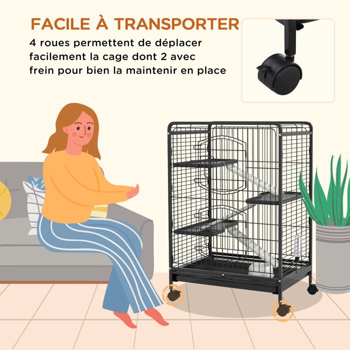 totales : 81L x 52,5I x 159H cm ● Dim. PawHut Clapier de sol cage à lapin niche supérieure avec rampe enclos extérieur porte NETTOYAGE ULTRA FACILE ET ACCÈS OPTIMISÉ : Plateau coulissant large 76,5L x 47,6l cm, plateformes et rampes amovibles, trois portes généreuses pour une gestion simple de l'enclos lapin et des moments chaleureux et propres avec vos compagnons Enclos Lapin Avec Rampes PAWHUT Cage Rongeurs 4 Plateformes 3 Rampes 4 Portes Dim. 80L X 52l X 159H Cm Acier Gris Mouchete Noir Cage Lapin 5 Niveaux 81x52.5x159 Cm Grande Caractéristiques:● Conception à plusieurs niveaux offre un espace de jeu et de repos optimal pour les petits animaux ● Matériaux robustes en fer et polypropylène assurent sécurité et durabilité ● Plateau amovible simplifie le nettoyage, garantissant un environnement propre ● Roulettes avec freins permettent un déplacement facile et sécurisé de l'enclos ● Portes multiples facilitent l'interaction et l'accès pour l'alimentation ● Adapté aux lapins, furets et chinchillas, répondant aux besoins variés des propriétaires ● Design moderne et élégant s'harmonise avec tout style de décoration intérieure ● Nécessite une installationSpécifications:● Couleur : noir ● Matériaux : métal, PP ● Dim. porte maille : 28l x 33H cm ● Dim. Yaheetech Cage pour Lapin Roulante à 4 Niveaux avec Plateforme Rampe... DESIGN CONTEMPORAIN ET INTÉGRATION FACILE : Enclos noir à base noire et grise, style épuré qui s'accorde à tous les décors, offrant à chaque animal un habitat moderne, raffiné et accueillant tout en embellissant votre environnement quotidien ESPACE XXL À MULTIPLES NIVEAUX : Enclos lapin spacieux 81L x 52,5l x 159H cm avec cinq plateformes amovibles et cinq rampes antidérapantes, parfait pour créer un parc lapin joyeux où vos petits animaux sautent, grimpent et profitent pleinement chaque jour PawHut Clapier en bois pour lapin avec enclos extérieur | Home Depot Canada D51-095V01BK ● Note : Ne convient pas aux hamsters et aux souris● Note: Si vous souhaitez la reprise de votre ancien produit, merci de consulter nos CGV sur les modalités de reprise et de nous joindre via la messagerie. plateforme : 45,5L x 25l cm ● Dim. MATÉRIAUX RÉSISTANTS ET SÉCURITÉ MAXIMALE : Structure en fer robuste avec fils de 4,2 mm et spacing de 2,4 cm, base en polypropylène, garantissant un enclos sécurisé qui protège vos animaux et inspire confiance pour des instants paisibles à la maison Cet enclos lapin spacieux à multiples niveaux offre un espace sécurisé et ludique grâce à ses rampes antidérapantes et plateformes amovibles. MOBILITÉ FLEXIBLE ET FIXATION STABLE : Quatre roulettes multidirectionnelles, dont deux avec freins, pour déplacer et fixer facilement le parc lapin dans n'importe quel espace intérieur, idéales pour des journées détendues et une organisation harmonieuse