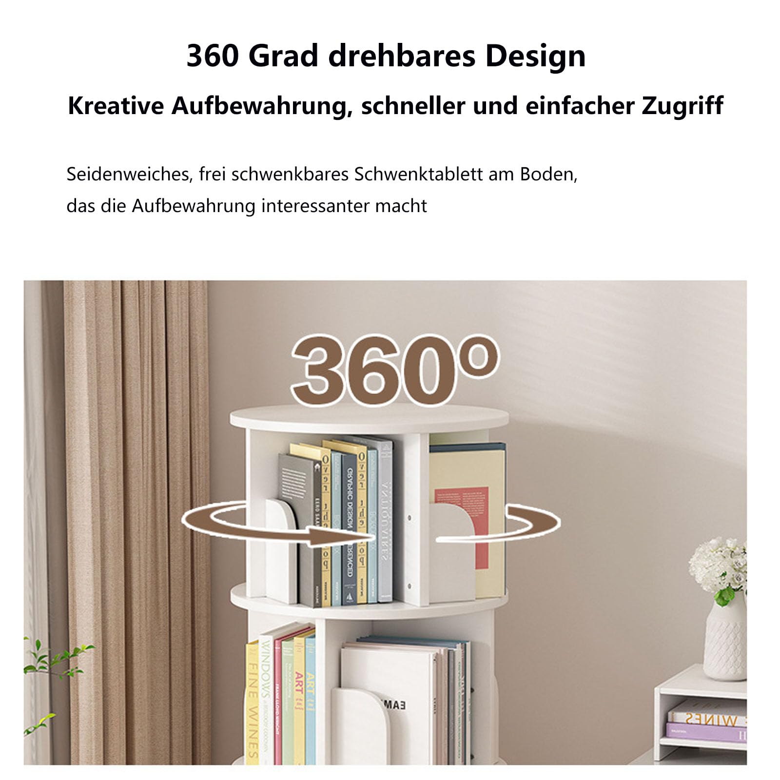 SCÈNES LARGEMENT UTILISÉES: Cette étagère de rangement est pratique à la fois à la maison et au bureau, elle peut être utilisée comme étagère de salon, étagère de chambre, étagère de chambre d'enfant, étagère de collection de jouets, armoire de salle de bain. Bibliothèque rotative en bois blanc Bibliothèque Rotative Manomano Bibliothèque Pliante Rotative à 5 Niveaux, Étagère D'Angle étagère Rotative 360 BIBLIOTHÈQUE ROTATIVE À 360° : La bibliothèque peut pivoter librement à 360 degrés, plateau tournant à billes en acier inoxydable, pratique et pratique. Il ajoute un espace de rangement supplémentaire et garde votre maison bien rangée et ordonnée Bibliothèque rotative à 360° à 5 niveaux en acrylique blanc crème pour salon, chambre à coucher, bureau – Solution peu encombrante. 323,75 €. sur... Faible encombrement, il couvre une surface de 0,1 ㎡, économisant de l'espace. MATÉRIAU DE QUALITÉ SUPÉRIEURE : L'étagère adopte un design en bois naturel et plastique, qui est sain, imperméable et résistant à l'humidité, pas facile à déformer, et bonne résistance aux intempéries, pas de pulvérisation de peinture, pas d'odeur, sûr à utiliser Apparence élégante, connt à tous les styles de décoration FACILE À ASSEMBLER : Structure à mortaise et tenon, installation facile, pas besoin de , structure stable.