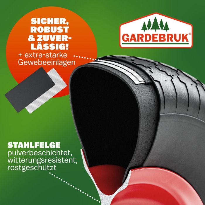 Linxor - Roue Gonflable pour brouette - 36 x 8.5 cm - Alésage 10 mm Roue gonflable pour brouette - 4.00 - 6 - Alésage 20 mm Pneus 4.00 X6 Roue De Brouette 4.00-6, Caoutchouc, Jante En Plastique, Rechange Pour Chariot, Robuste, Jusqu'à 100 Kg, Noir, Relaxdays | Leroy Merlin Roulements Doubles Valve Auto Les roues complètes Garronda pour brouettes et chariots sont livrées prêtes à être montées : jante en acier peint, doubles roulements à billes et axe fourni selon les modèles. Cotes standard (Ø 320–405 mm, largeur 90–97 mm, alésage 12 mm, moyeu 97–99 mm) pour faciliter le remplacement. Relaxdays Roue de brouette 4.80 4.00-8, pneumatique, charge maximale... Le pneu avec chambre à air offre un roulage confortable et une bonne adhérence sur gazon, terre et gravier. Valve auto (AV) pour un gonflage simple. Marque Garronda: large choix de roues de brouette, pneus et accessoires pour le jardin et la manutention, pensés pour la praticité et la durabilité au quotidien. Cotes compatibles: Ø extérieur 320 mm, largeur 90 mm, alésage 12 mm, moyeu 97 mm, carcasse 2PR; pression 2,1 bar / 30 PSI avec valve auto pour un gonflage simple.