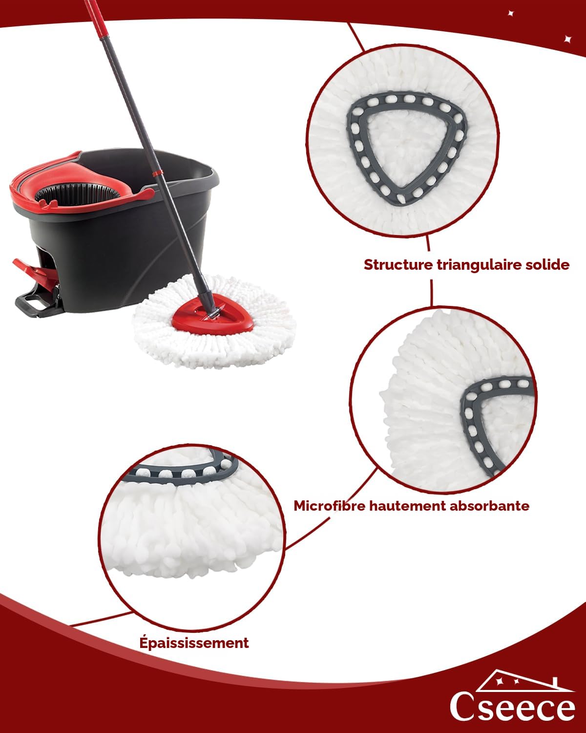 Matériau du produit : microfibre. Serpillère De Rechange Pour Aspirateur Robot Sdj06Rm - Pièces De Rechange Pour Aspirateur Robot Les recharges de serpillère rotative en microfibre peuvent être facilement clipsées et retirées de la serpillère. Têtes Lavables Machine Nettoyage Compatible EasyWring Tête De Vadrouille Rotative Rouge Compatible Vileda - Base De Rechange Triangulaire - Pour Système 1 Réservoir Nettoyage Sols Coins Recharge Vileda Turbo Nom du produit : tête de rechange pour serpillère. Réutilisable et lavable en machine. Lot de 4 têtes de rechange pour serpillère rotative Vileda - Nettoyage... Notre tête de balai de rechange est largement utilisée, elle est adaptée à tous les sols, tels que les sols en bois, le carrelage, le stratifié et le marbre, et peut également être utilisée pour nettoyer les voitures et autres surfaces lisses. Matériau de haute qualité : notre serpillère de rechange est fabriquée en microfibre de haute qualité, douce, durable, résistante à l'usure, très absorbante et facile à utiliser, elle peut facilement enlever les taches et les saletés sans rayer la surface que vous nettoyez. Recharge en microfibre de vadrouille Vileda ProMist Max, tête de... Ces têtes de rechange pour balai rotatif vous permettent non seulement d'économiser du temps et de l'argent, mais facilitent également le nettoyage du travail. 【Ensemble de têtes de balai de rechange】: vous recevrez 10 paquets de têtes de rechange compatibles avec le système Vileda 1, flexibles et pratiques, quantité suffisante, elles peuvent être utilisées pour votre balai rotatif, peuvent être utilisées pendant un an, pour répondre aux travaux de nettoyage quotidiens. Réutilisable et lavable en machine : les recharges de tête de rechange en microfibre sont lavables en machine et faciles à nettoyer, vous permettant de libérer vos mains après avoir fait des travaux ménagers fatiguants. La tête de balai de rechange est adaptée pour les cuisines, les salons, les salles de bains, les chambres et d'autres endroits. Remarque : la tête de balai rotatif de rechange ne convient que pour le système Vileda 1., 【Largement applicable】 : la tête de rechange pour balai rotatif peut non seulement être utilisée humide pour un nettoyage en profondeur, mais peut également être utilisée à sec pour nettoyer les murs ou d'autres zones tachées.