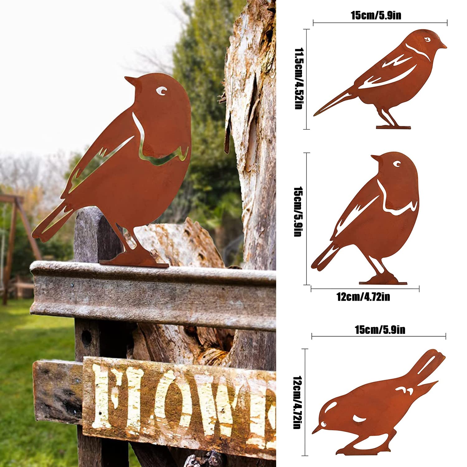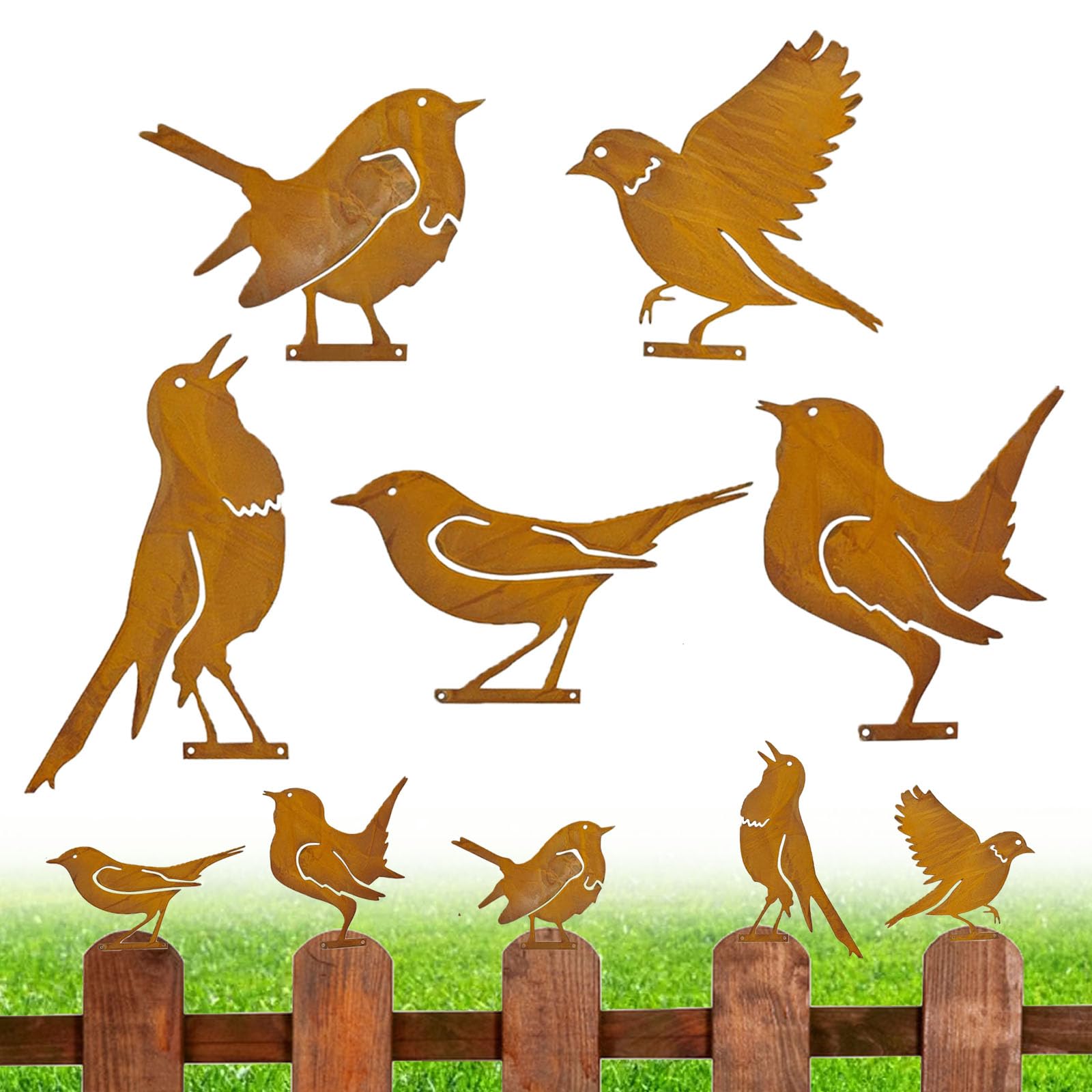 La jolie décoration en métal est également fonctionnelle : Ainsi, vous pouvez créer une délimitation sur votre clôture, Veuillez noter que la prise peut déteindre. FACILE À UTILISER: Décoration de fenêtre suspendue est fabriquée en métal et reçoit un look moderne shabby chic dans différentes nuances de marron grâce à une finition patine FACILE a FIXER: Oiseaux sont simplement vissés dans le bois avec la vis intégrée. Les oiseaux sont tout simplement enfoncés dans le bois par intégrée. Art Mural en MéTal Oiseau sur Branche D'Arbre Silhouette de MATÉRIAU: Grille décorative en fer pour l'extérieur. Fabriqués en métal et aspect rouille élégant, les oiseaux attirent tous les regards en toute saison. Facile à installer : la silhouette d'art de jardin en métal durable avec vis peut être facilement installée sur les rebords de fenêtre, les clôtures, les... ENSEMBLE CADEAU IDÉAL: Notre décoration de jardin en métal, piquets en métal, chaque pièce est emballée individuellement pour éviter les rayures. Caractéristiques : Matériau : Acier au carbone. ART D'OISEAU EN MÉTAL: Décoration de la pelouse de l'oiseau en métal fait référence à la taille réelle de l'oiseau. Déco Extérieure Métal Vintage 5Pcs Oiseaux Rouillés Avec Vis Oiseaux Jardin Silhouette Décoration Oiseaux Métal Yard Art Un design vintage pour ajouter une touche à votre jardin. Économie d'installation : transformez votre espace extérieur avec la silhouette d'oiseaux rouillés en l'insérant sans effort dans votre jardin ou en utilisant les enjeux intégrés. Le design charmant et rustique ajoute une touche unique sans aucun montage compliqué Cela garantit une stabilité beaucoup plus élevée que les connecteurs conventionnels