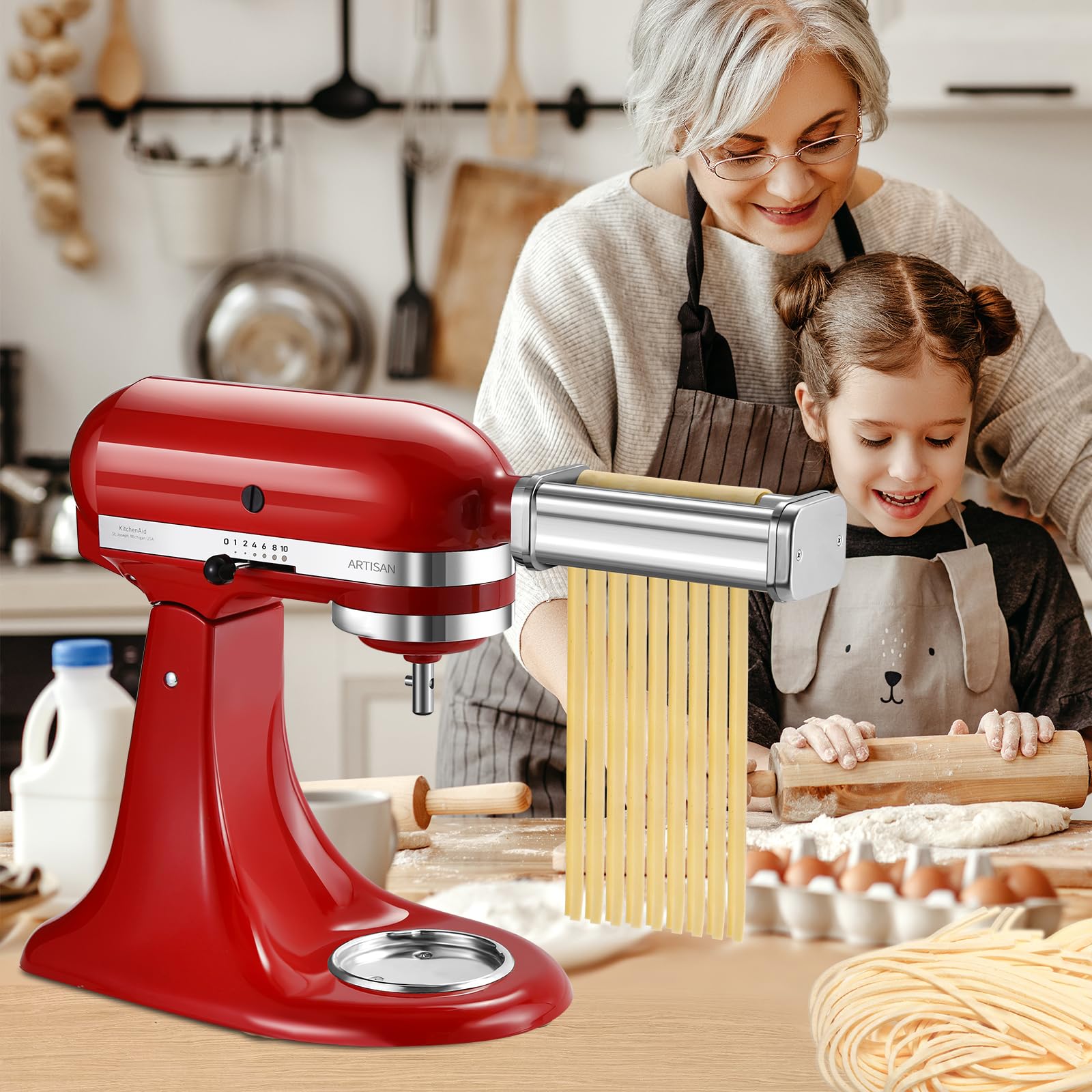Laminoir A Pate Kit De Pâtes - Accessoire Pour Rouleau à Pâtes - Pour Robot De Cuisine Coupe Spaghetti Et Fettuccini Rouleau à pâtes | 3 Jahre Garantie | Pro-Idee Rouleau à Pâtes pour KitchenAid en Acier Inoxydable Accessoire à Comprend un rouleau à pâtisserie d'environ 14 cm de large et 8 épaisseurs réglables. ANTREE Accessoire pour achine à pâtes KitchenAid avec égouttoir à... Coupe-fettuccine pour fettuccine et pâtes larges aux œufs d'environ 6,5 mm de large. Accessoire de pâtes de haute qualité en acier inoxydable 304 pour une durabilité et des performances maximales. Compatible avec le mixeur sur socle KitchenAid pour des applications polyvalentes. Description du produit À propos de Qwork Économisez davantage, obtenez davantage Pas de publicités, seulement des prix bas et de bons produits.