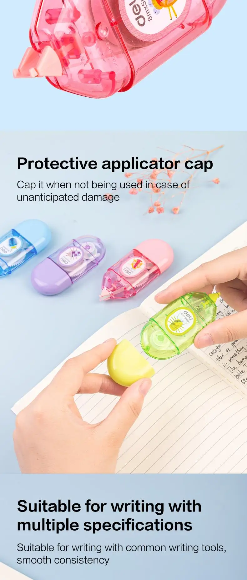 Léger et portable, il se range facilement dans une trousse ou un cahier. 54 éléments · TIPP-EX Mini roller de correction jetable sans sol · TIPP-EX Roller de correction latéral EASY CORRECT 8290352 · PERGAMY Roller correcteur Latéral... Il convient à la plupart des papiers blancs. Cette couleur douce est agréable au toucher. Ruban Correcteur Zasjon 6 Pièces Rouleaux De Correction, 6m X 5mm Mini Correcteur Sec Pratique Sans Attente Séchage Il peut être plié ou redressé à volonté et sadapte facilement à différents angles. Spécifications :Nom du produit : Ruban correcteurQuantité : 6 piècesLongueur du ruban : 6 m x 5 mm/pièceCaractéristiques :1., Dégradé de 6 couleurs, prise en main confortable2., 5 cm de large et 6 mètres de long, portable et résistant à la poussière3., Rotation fluide, correction sous tous les angles4., Ruban indéchirable, couverture uniforme5., Séchage rapide et sans traces, écriture immédiate après correctionContenu :6 rubans correcteurs Il est fourni avec une housse de protection pour éviter lusure. Ce ruban correcteur se caractérise par une écriture fluide et une utilisation plus facile que le correcteur liquide. Corrigez facilement vos erreurs dans vos devoirs et documents. En les assemblant, vous remarquerez un dégradé de bleu, rose et violet sur leur enveloppe extérieure. La poignée est confortable et offre une prise en main ferme. Facile à utiliser]Le souris correcteur blanc est facile à utiliser et permet de corriger rapidement les erreurs d'écriture. Contrairement au stylo correcteur, il n'est plus nécessaire d'attendre que les liquides ou les encres sèchent 【Dégradé de couleurs】 Chaque paquet contient 6 rubans correcteurs blancs de couleurs différentes. La surface après correction est propre et sans bavures. Plus Dérouleur De Correction Mini Pastel, 6m X 5mm, Présentoir De 50 Pieces En Couleurs Assorties 4977564708856