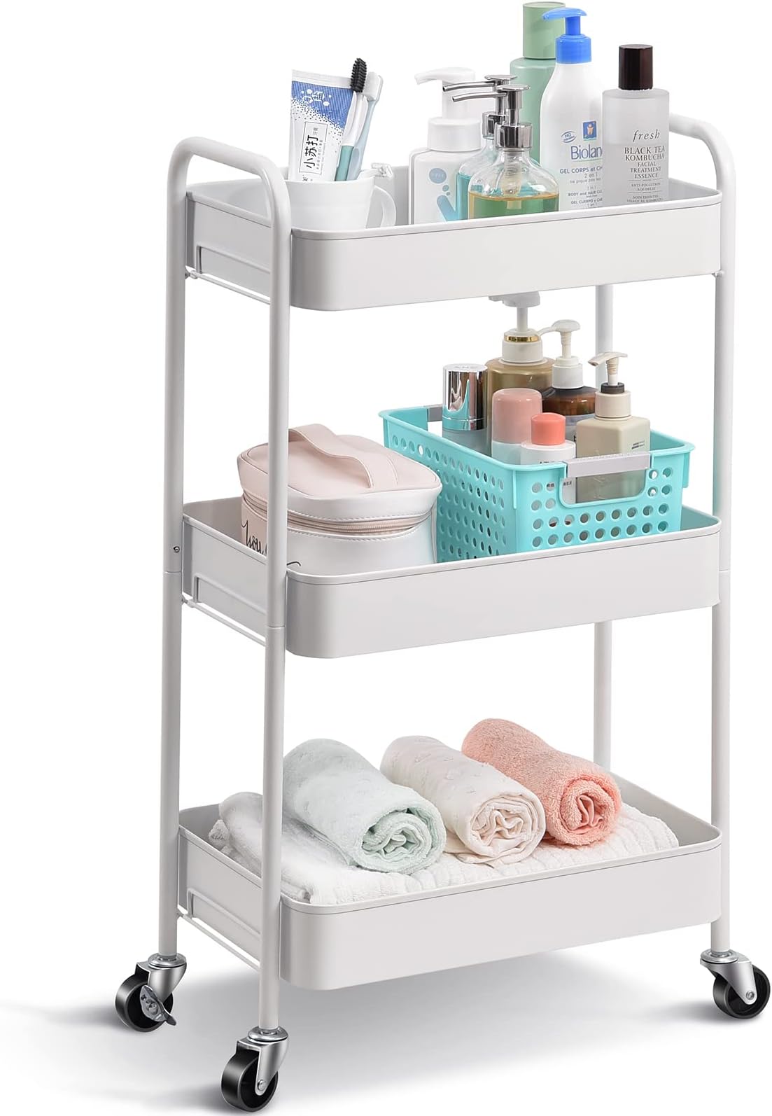 Taille pliée : 28 x 3,75 x 34,6 pouces. L'étagère peut être rangée sous le lit, dans les armoires étroites, derrière les portes, etc. Se déplie en moins de 5 secondes et est pré-assemblée sans outils, sans assemblage fastidieux. 【Roues verrouillables et design croisé】 : 4 roues souples et durables avec rotation à 360 °. Que ce soit dans la cuisine, la chambre, le salon, le bureau, etc. Cette étagère de rangement dispose de trois étagères pratiques avec des motifs croisés des deux côtés pour éviter que rien ne tombe. Pliable et peu encombrante, elle est idéale pour une salle de bain, comme rangement, ou comme décoration dans une chambre. Tailles Disponibles pour votre Sélection Spécifications: Nom : Étagères pliables à roulettes Étagère de Rangement Cubes à 3 Étages, Blanc | Meilleur Prix Ces étagères s'adaptent presque partout dans votre maison et se plient facilement à plat lorsque vous ne vous en servez pas. Elle ne prend pas plus de place lorsqu'elle n'est pas utilisée. La surface est recouverte de polycarbonate, imperméable et résistant à la corrosion. NOUVEAU Desserte métal Chariot de cuisine à étagère pliable, mobile Le design spacieux des étagères pliables en métal à 3 niveaux est assez robuste pour résister à de lourdes charges. Capacité de charge élevée Résistant aux rayures et à la rouille, Gain de place, Aucune installation requise Avec les freins, le chariot de cuisine roulant devient plus stable, ne vous inquiétez pas de glisser. 【Étagère pliante à 3 niveaux et facile à ranger】 Taille ouverte : 28 x 13,8 x 34,6 pouces. Rapide à plier et à déplier : ce chariot de rangement dispose d'une fonction de dépliage et de pliage en une seconde. Vous pouvez facilement ouvrir le chariot... Rangement Compact Pliable Etagère 3 étages à Roulettes - Chariot De Stockage - Meuble De Rangement De Cuisine, Salle De Bains, 54x13x72cm - Yaheetech - Maison Charge 50kg Par étagère La hauteur de chaque niveau crée non seulement plus d'espace supplémentaire, mais garde également votre maison propre et bien rangée. Pliable et polyvalente : cette étagère à trois niveaux se plie facilement. Capacité de charge par niveau : 50 kg, Couleur : Noir/Blanc, Avantages : Grande capacité