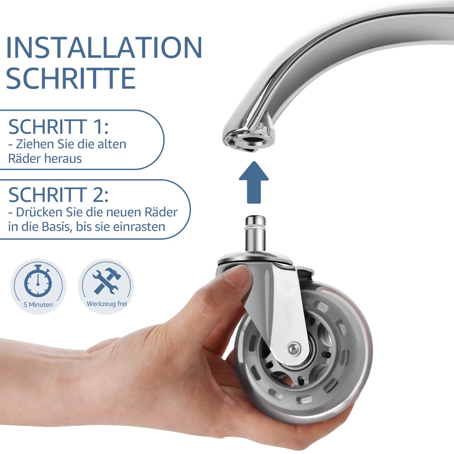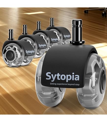 Roues Protection Parquet 70mm Sytopia Lot De 5 Roulettes En Caoutchouc Pour Chaise De Roue Chaise De Bureau CLP Fauteuil De Bureau Ergonomique Castle en Similicuir I Chaise Set De 5 Roulettes Chaise De Bureau 50Mm Noir Pivotantes Roulettes... (Veuillez vérifier la taille de votre roue avant de commander). Roulettes en caoutchouc avec tige de 10 mm x 22 mm, 70 mm de hauteur. Protège les sols en bois : les roues en caoutchouc sont spécialement conçues pour le bois, le parquet, le stratifié ou le carrelage. Roues pour chaise de bureau de 10 mm : la taille des roulettes de 10 mm x 22 mm est uniquement compatible avec presque toutes les chaises de 10 mm x 22 mm. Sa surface en caoutchouc souple protège le sol et ne laisse pas de rayures ou de dommages. Glissement silencieux et doux : la conception des roues de la chaise de bureau Sytopia permet un glissement silencieux et en douceur sans perturber l'environnement de travail. Sa capacité de charge est de plus de 300 kg, une option idéale pour remplacer les vieilles roues. Pas de rayures pour tous les sols : les roulettes en caoutchouc Sytopia ne nécessitent pas de tapis de protection du sol. Les roulettes en caoutchouc sont douces et silencieuses sur vos sols en bois dur, tapis, carrelage, parquet, marbre et stratifié, sans rayer, fissurer ou faire du bruit. Lot de 5 roulettes pour chaise de bureau, 10 x 22 mm, pour...