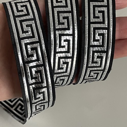 Design Jacquard Raffiné: Motifs floraux d'inspiration ottomane tissés avec une grande finesse. Un choix parfait pour une décoration riche et sophistiquée Apporte une finition vintage et élégante. Parfait pour les finitions de rideaux, les bordures de nappes, la confection de costumes traditionnels ou vos projets créatifs les plus soignés. Tissu Ruban Galon Violet et Noir – Parfait pour Bordures et Accessoires Palette Élégante sur Fond Noir: Les tons doré, ivoire et terracotta se détachent magnifiquement sur le fond noir profond. Ce galon de 28 mm de large présente un motif floral oriental raffiné, avec des teintes or, ivoire et terracotta magnifiquement tissées sur un fond noir profond. Découvrez notre sélection de rubans jacquard de haute qualité pour tous vos projets de couture et de création. Craquez pour nos galons jacquard aux motifs... Idéal également pour les amateurs de couture, scrapbooking et projets DIY. Apportez une note d’élégance artisanale à vos créations avec le ruban jacquard Éclat Ottoman, vendu en rouleau de 10 mètres. Que ce soit pour la couture, les décorations murales ou les accessoires, il s’adapte à toutes vos idées. Galon Tissé Ottoman Noir Terracotta Galon Ruban Jacquard Tisse Noir Et Argent Geometrique 10mt X Galon Décoration Couture Rideau Costume Retrouvez une gamme complète de rubannerie, des galons, des cordons... mercerie en ligne pour vos travaux créatifs Inspiration Maison & DIY: Apportez une touche artisanale à vos projets d’ameublement, rideaux, coussins ou abat-jours.