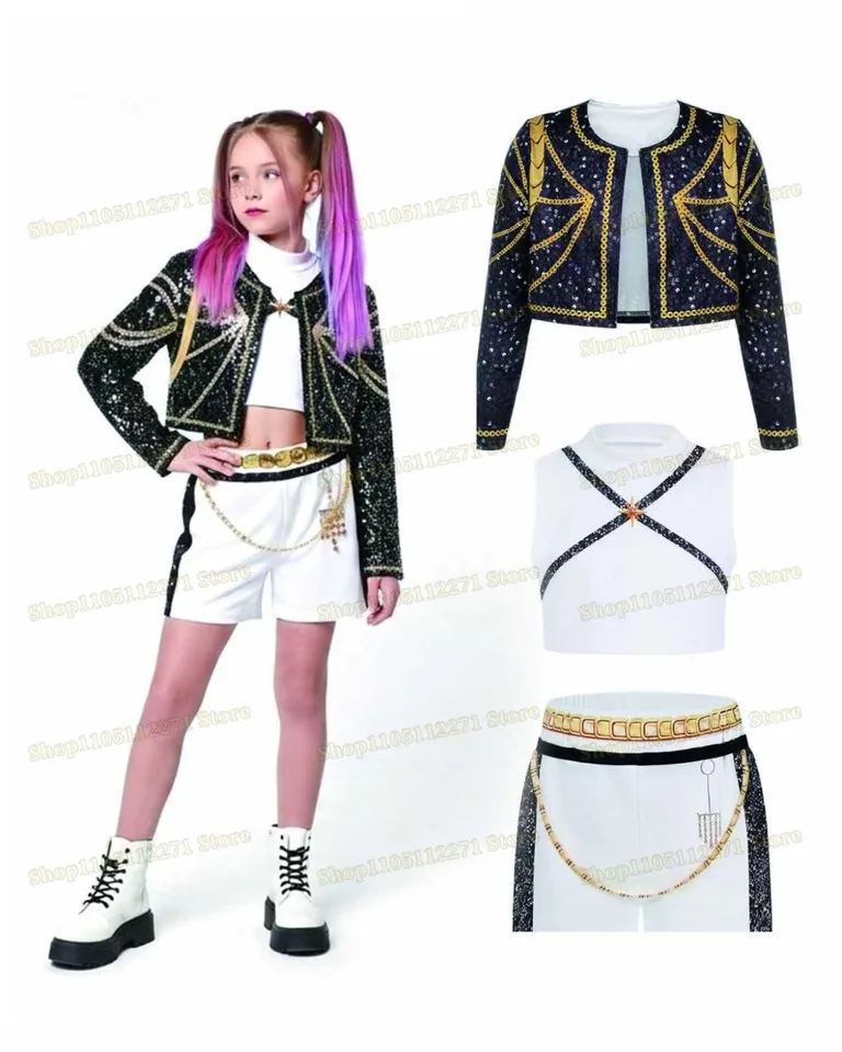 POUR ENFANTS: Tenue spécialement conçue pour les jeunes fans, adaptée aux performances et au port quotidien THÉMATIQUE UNIQUE: Costume distinctif combinant les éléments de la culture K-Pop et du thème des chasseurs de démons Kpop demon hunters zoey cosplay Le costume capture l'essence du style K-Pop tout en restant fidèle à l'esthétique unique de la série. Que ce soit pour une représentation scolaire, une fête d'Halloween ou une convention de fans, ce costume permettra aux enfants de vivre pleinement leur passion pour l'univers des Demon Hunters. Costume Cosplay Enfant Costume De Cosplay Rumi Zoey Mira Kpop Demon Hunters, Ensemble Complet Costume Zoey Rumi Mira L'ensemble offre une liberté de mouvement optimale, essentielle pour les performances dynamiques sur scène. Une tenue polyvalente qui fera sensation lors de toutes les occasions spéciales. OCCASIONS MULTIPLES: Idéal pour les fêtes d'Halloween, les spectacles de groupe, les événements cosplay et les performances scéniques COSTUME COMPLET: Ensemble de cosplay Demon Hunters inspiré du personnage Zoey Rumi Mira, parfait pour les performances sur scène