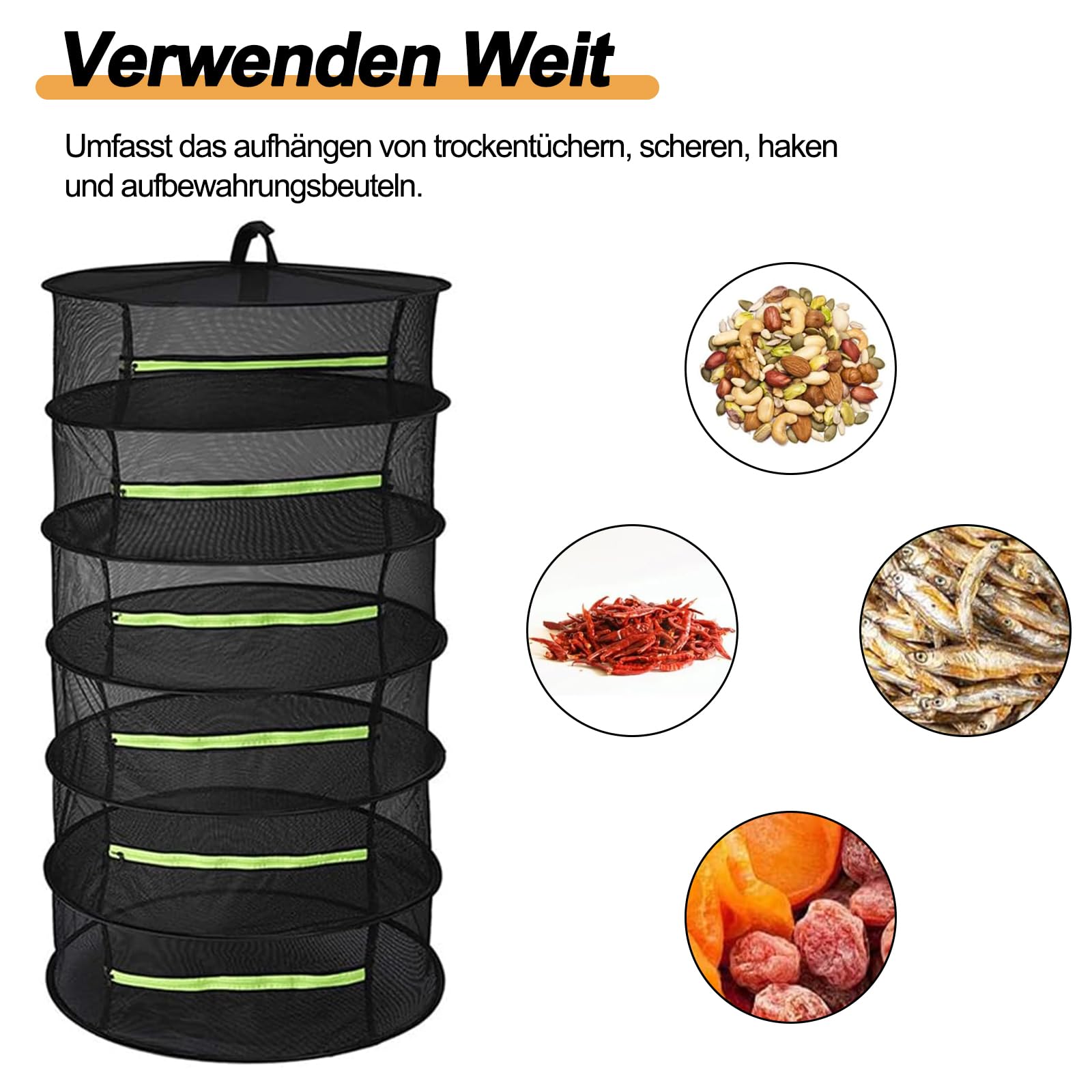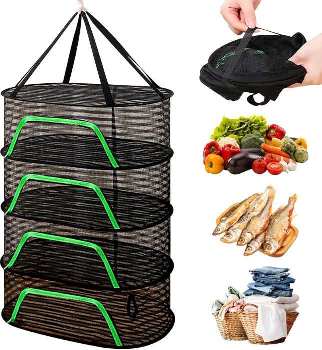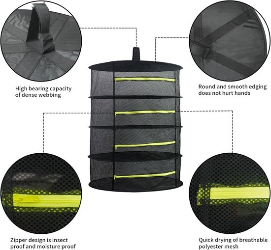 Grand filet de séchage à 6 couches avec fermetures éclair indépendantes sur chaque couche pour empêcher les aliments de tomber et éviter les mouches, les insectes et les morsures d'oiseaux. Faites attention à sa forte élasticité lors du déballage du filet de séchage pliable. Convient pour stocker et sécher les herbes, les pétales, etc. Le filet de séchage des herbes peut être accroché avec des crochets dans différents endroits à l'intérieur et à l'extérieur, par exemple sur les balcons, garages, terrasses, cuisines, caves, serres, etc. Chaque couche dispose d'un anneau en acier inoxydable intégré pour s'assurer qu'elle ne se déforme pas après une utilisation prolongée. Veuillez le déballer uniquement dans un endroit ouvert. Filet Séchage 6 étages Pliable Filet De Séchage Pour Herbes Aromatiques - Séchoir Pliable à 6 Couches Avec Crochets Filet Séchage Herbes Séchoir à Herbes à Suspendre, 0.6m 6 Couches en Maille Filet pour Contenu de la livraison : 1 filet de séchage pour herbes., 1 sac de rangement., 1 crochet en S. Équipé d'un sac de rangement d'un diamètre de 24 cm pour économiser de l'espace. Filet de séchage suspendu : chaque couche dispose de fermetures éclair indépendantes qui peuvent être triées et séchées pour éviter le mélange. Filet de Séchage Suspendu Pliable, 6 Couches Filet de Séchage des... Nombre de couches : 6 couches. Filet de séchage multifonction : le filet de séchage peut être utilisé pour sécher les herbes, les fruits, les fleurs, la viande, les noix, etc. Grande capacité : le filet de séchage pliable à suspendre dispose d'un espace de rangement à 6 niveaux de grande capacité, équipé de crochets en forme de S et de poches de rangement. Grande capacité : le filet de séchage à 6 niveaux est une solution parfaite pour sécher de grandes quantités d'herbes, de plantes et de légumes dans un petit espace Les filets de séchage permettent de sécher rapidement et uniformément les herbes, les fleurs, les herbes ou d'autres objets tout en gardant les petits animaux et les oiseaux à distance. Peut être accroché aux balcons, cuisines, serres, etc., avec des crochets. ainsi que pour sécher les petits poissons séchés, les haricots, les fruits, les noix, les champignons et autres aliments.