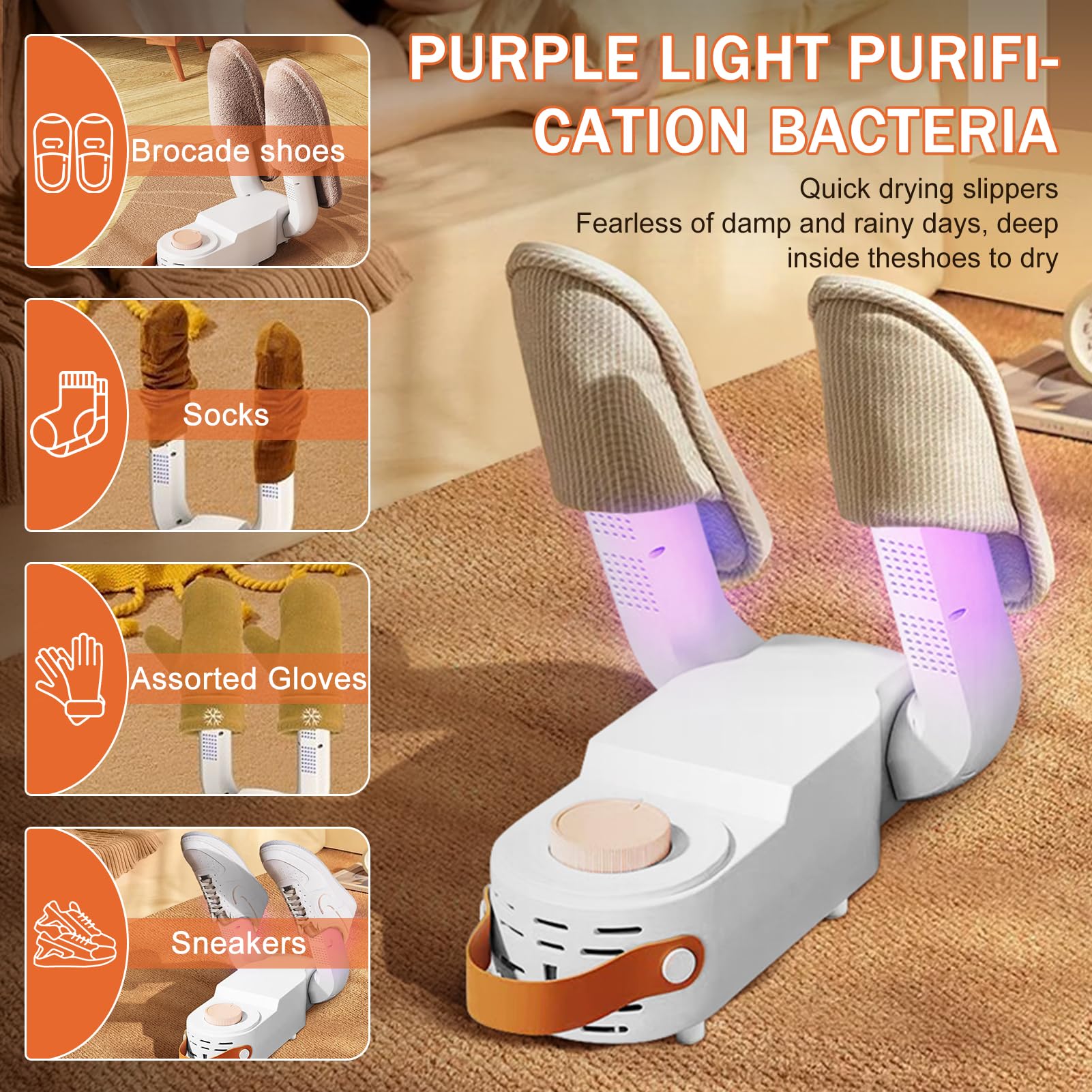 Pour des chaussures de différents matériaux, épaisseurs et niveaux d'humidité, vous pouvez régler une minuterie sur 1, 3 ou 6 heures pour protéger vos chaussures préférées de la surchauffe. Les trous du Seche Chaussure Electrique sont bien répartis et, lorsqu'il est chauffé, l'air chaud circule à l'intérieur de la chaussure, protégeant ainsi la semelle et la tige Sèche Chaussures électrique 4 Bras Fiotha Sèche-Chaussures électrique, Seche Chaussure électriques Botte Decathlon Qqmora sèche-chaussures électrique Sèche-chaussures avec fonction... 👞【Séchage et antibactérien】Le Seche Chaussure Electrique utilise antibactérienne par ultraviolets, il peut détruire l'habitat des micro-organismes dans les chaussures, inhibant ainsi la croissance des micro-organismes et éliminant les odeurs. Description du produit 1., Le Sèche-Chaussures Électrique non seulement de sécher les chaussures et chaussettes mouillées, mais aussi de les réchauffer en hiver. Merci de votre compréhension., 2., N'hésitez pas à nous contacter pour résoudre vos problèmes ; nous vous apporterons une réponse satisfaisante. Idéal pour les voyages ou la maison Son compartiment d'aromathérapie (avec des comprimés) améliorant ainsi les propriétés antibactériennes et désodorisantes Une température constante de 48 °C réchauffe vos chaussures tout en étant très sûre et efficace., 2., Une fois chauffé, un flux d'air chaud se crée à l'intérieur de la chaussure. L'appareil s'éteint automatiquement après la durée spécifiée, pour une sécurité et une efficacité optimales Spécifications : Nom du produit : Sèche-chaussures électrique à 4 bras Couleur : Beige Dimensions : 20 x 9 x 23 cm Tension nominale : 220 V Puissance nominale : 180 W Réglage de la durée : 1 h/3 h/6 h Modes : 2 F séchage à deux jambes, 4 F séchage à quatre jambes Contenu : 1 x Seche Chaussure Electrique Attention : 1., Veuillez tolérer de légères erreurs dues aux mesures manuelles. La chaleur tournante douce se réchauffe jusqu'à 48 °C, sèche vos chaussures, gants ou bottes rapidement et en douceur. Parfait comme sèche-chaussures, sèche... 👞【Minuterie intelligente】Ce Seche Chaussure Electrique est doté d'une minuterie. Son design pliable facilite le rangement du Seche Chaussure Electrique dans votre valise ou votre bagage à main. Il est également idéal pour les gants, les bonnets, les chaussettes, etc. Électrique De Démarrage Sèche-Linge, 2 Sèche Chaussure avec 99 Minutes