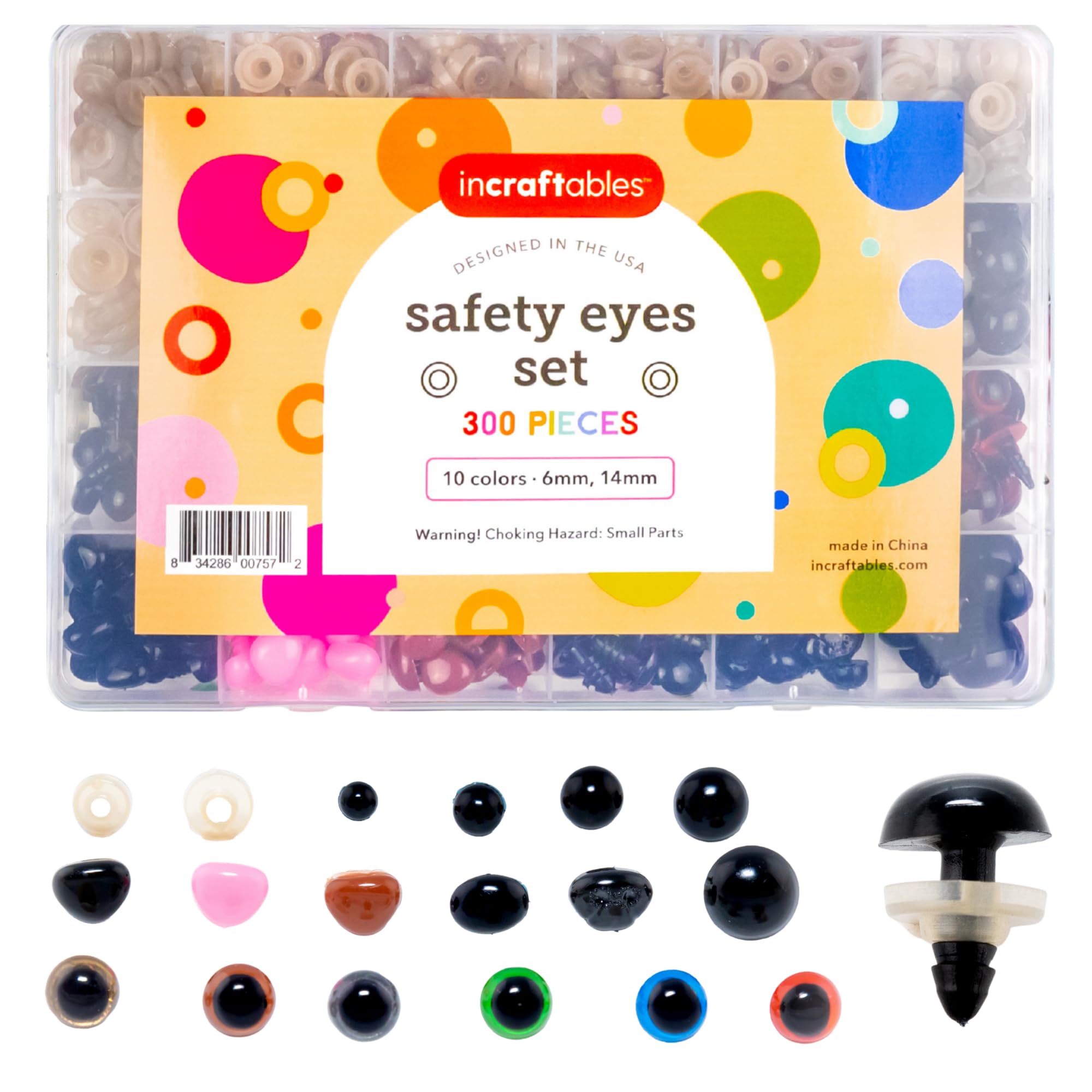 Yeux et Nez de Sécurité pour Animaux - Pack de 752 - Mix Couleur - Jouets Projets de Crochet Yeux de Securite Aigurui 1040 Pièces Yeux et Nez de Sécurité Avec... Rembourrage Peluche Crochet Katutude Yeux De Sécurité Et Nez De Sécurité 180 Pièces, Yeux De Poupée En Plastique Avec Rondelles 12-30 Mm Yeux Sécurité Amigurumi Safety Eyes Crochet Pour Les Poupées En Peluche Artisanat DIY Yeux Plastique Sécurité Tige Spécifications : Matériau : plastique Couleur : blanc, noir, rose Taille : 8mm, 10mm, 11., 5mm, 12., 5mm, 15mm Les boutons pour yeux de poupée sont le meilleur accessoire pour toutes sortes de travaux manuels, tels que le feutrage à l'aiguille, les boutons pour vêtements de poupée, les ours en peluche, les jouets en peluche, les projets faits à la main, etc. LE PAQUET COMPREND : 100 PIÈCES (8mm), 50 PIÈCES (10mm), 50 PIÈCES (11., 5mm), 50 PIÈCES (12., 5mm), 50 PIÈCES (15mm), différentes tailles d'yeux et de nez de sécurité peuvent répondre à vos différents besoins et sont stockés dans une boîte de rangement, facile à utiliser, à ranger et à transporter ! Ces yeux de sécurité pour animaux au crochet sont un bon choix pour les bricoleurs, adaptés à une variété de poupées, telles que les poupées, les ours en peluche, les jouets en peluche, etc Le produit fini ajoutera une atmosphère joyeuse à votre maison. FACILE À UTILISER : Les yeux de poupée au crochet sont faciles à enfiler et à coudre, le design vibrant rend le bricolage plus amusant, parfait pour le shabby chic, la mode campagnarde et les projets à thème. Convient pour le bricolage, l'artisanat, la production en usine, la fabrication de cadeaux. LARGE APPLICATION : Nos yeux de poupée en peluche peuvent être utilisés pour fabriquer toutes sortes de poupées en peluche, poupées tricotées, marionnettes, jouets d'animaux et ainsi de suite.