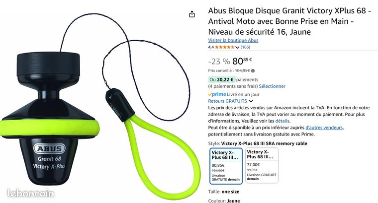 Abus ABUS 68 GRANIT VICTORY X-PLUS FULL DISC LOCK Cela signifie que le cadenas à disque peut également être utilisé sans chaîne, ce qui en fait un compagnon idéal, facile à stocker, sur les itinéraires à courte distance. Abus Granit Super Extreme 2500 Sécurité Moto Scooter Antivol Moto ABUS Granit Detecto XPlus 8008/12KS120 - Chaîne 12mm 120cm + Alarme - Niveau Sécurité 20 Abus Xplus 8008 Cadenas Disque Moto Cette combinaison est la solution dite 2 en 1. TRÈS BONNE SÉCURITÉ : le système de fermeture XPlus offre une protection extrêmement élevée contre les manipulations et les chaînes, l'anse et le corps de... ABUS Antivol moto Granit 68 Victory 12KS 120 Black Loop - Antivol à disque de frein chaîne de 12 mm d'épaisseur - Niveau de sécurité 17. 141,75 €. 141,75... CHAINE & SERRURES : chaîne de 12 mm d'épaisseur et de 120 cm de long, recouverte d'une gaine textile pour protéger la peinture ; goupille de fermeture de 14 mm TRÈS BONNE SÉCURITÉ : le système de fermeture XPlus offre une protection extrêmement élevée contre les manipulations et les chaînes, l'anse et le corps de la serrure ainsi que les pièces porteuses du mécanisme de verrouillage sont en acier spécialement trempé. CLEFS : deux clés incluses dans la livraison + ABUS Code Card pour le double et le remplacement des clés Si la possibilité existe, une combinaison de disque et de verrouillage de chaîne peut également être utilisée. PRISE EN MAIN CONFORTABLE : la chaîne avec effet de boucle offre des possibilités de connexion confortables tout en utilisant de manière optimale la mesure de la longueur Les combinaisons de cadenas constituent un excellent choix pour la protection des motos et des scooters.
