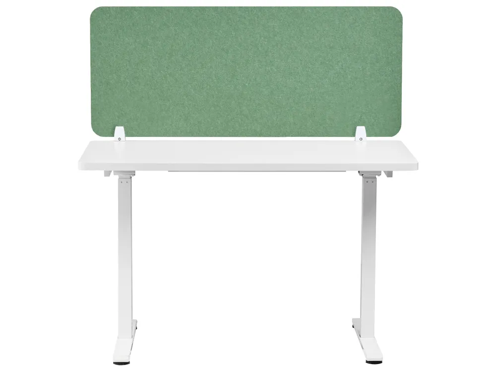 Accessoire Télétravail Séparateur De Bureau Acoustique 120cm MANADE Séparateur PET Avec Pinces Séparateur de bureau acoustique avec pinces de fixation. Améliorez votre intimité grâce à cet écran de bureau rectangulaire. Acoustique et fabriqué en PET durable, cet écran ne nécessite aucun entretien quotidien. Il est livré avec des pinces qui permettent de le fixer très facilement et rapidement à un bureau, vous protégeant ainsi que vos documents ou votre écran d'ordinateur... Cloison amovible de bureau Rouge clair WALLY Idéal pour une utilisation dans les bureaux traditionnels et à domicile. Séparateur de bureau acoustique avec pinces de fixation. Améliorez votre intimité grâce à cet écran de bureau rectangulaire. Acoustique et fabriqué en PET... Il limite les bruits de fond pour vous aider à vous concentrer sur votre travail. 5 - 15 min Informations supplémentaires: Veuillez noter que ce produit n'est compatible qu'avec les bureaux d'une épaisseur comprise entre 2,5 cm et 4,5 cm. Séparateur de bureau avec pinces de fixation Détails: Type de produit: Cloison amovible de bureau Style: Moderne Couleur principale: Vert Type de matière: Tissu Matière principale: Tissu Matière secondaire: Matière synthétique Composition de la matière: 100% Polyester Forme: Rectangulaire Dimensions: Profondeur: 1 cm Largeur: 120 cm Hauteur: 50 cm Poids: 2., 5 kg L`offre inclue: Le matériel de montage, 1 x Cloison amovible pour bureau Caractéristiques clés: Installation facile et rapide, Décoratif et fonctionnel, Résistance exceptionnelle, Sert d'écran acoustique pour l'isolation phonique dans les bureaux, Facile à entretenir Informations d`assemblage: Assemblage partiel requis.