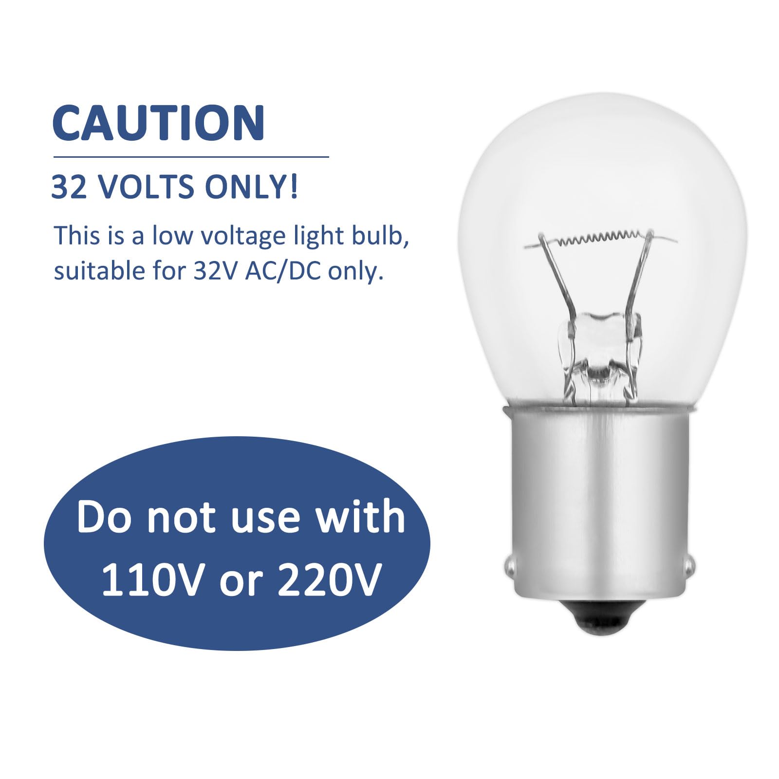Ampoules Extérieur S25 Blanc Chaud 2700k Caldarax Ampoules Extérieures S25 BA15s 32V 18W, Dimmable, Blanc Chaud Eclairage Tableau De Bord Feux Position Ampoule Porte Garage BA15S 32,5V 34W - Lampe à incandescence Blister 2 ampoules à LED S25 Ba15s R5W - 12V - 1.20W - 5 x SMD 5050 Durée de vie allant jusqu'à 1000 heures – réduit la fréquence de remplacement Blanc chaud 2700K]Cette ampoule d'extérieur S25 BA15s a un angle de faisceau de 360 degrés, ce qui vous apporte de superbes effets de lumière. La... Utilisation & Garantie : Idéale pour les signaux, les tableaux de bord, les feux intérieurs, les feux arrière, les clignotants, les bateaux & les lumières extérieures Veuillez vérifier la tension et les dimensions avant l'achat La température de couleur blanc chaud 2700K est relaxante et crée une atmosphère chaleureuse Ampoule Extérieur BA15s 18W 32V : Ø25x48mm.